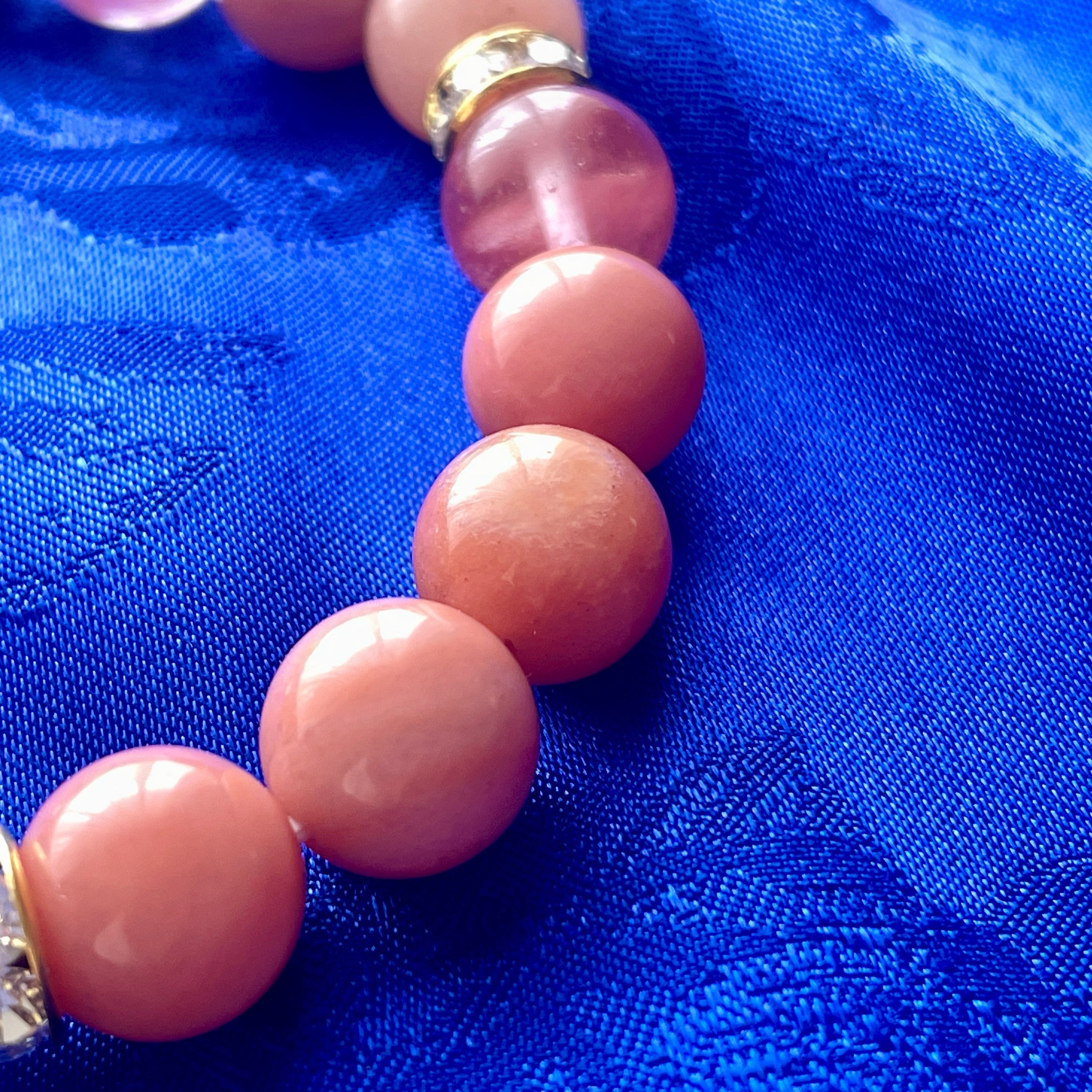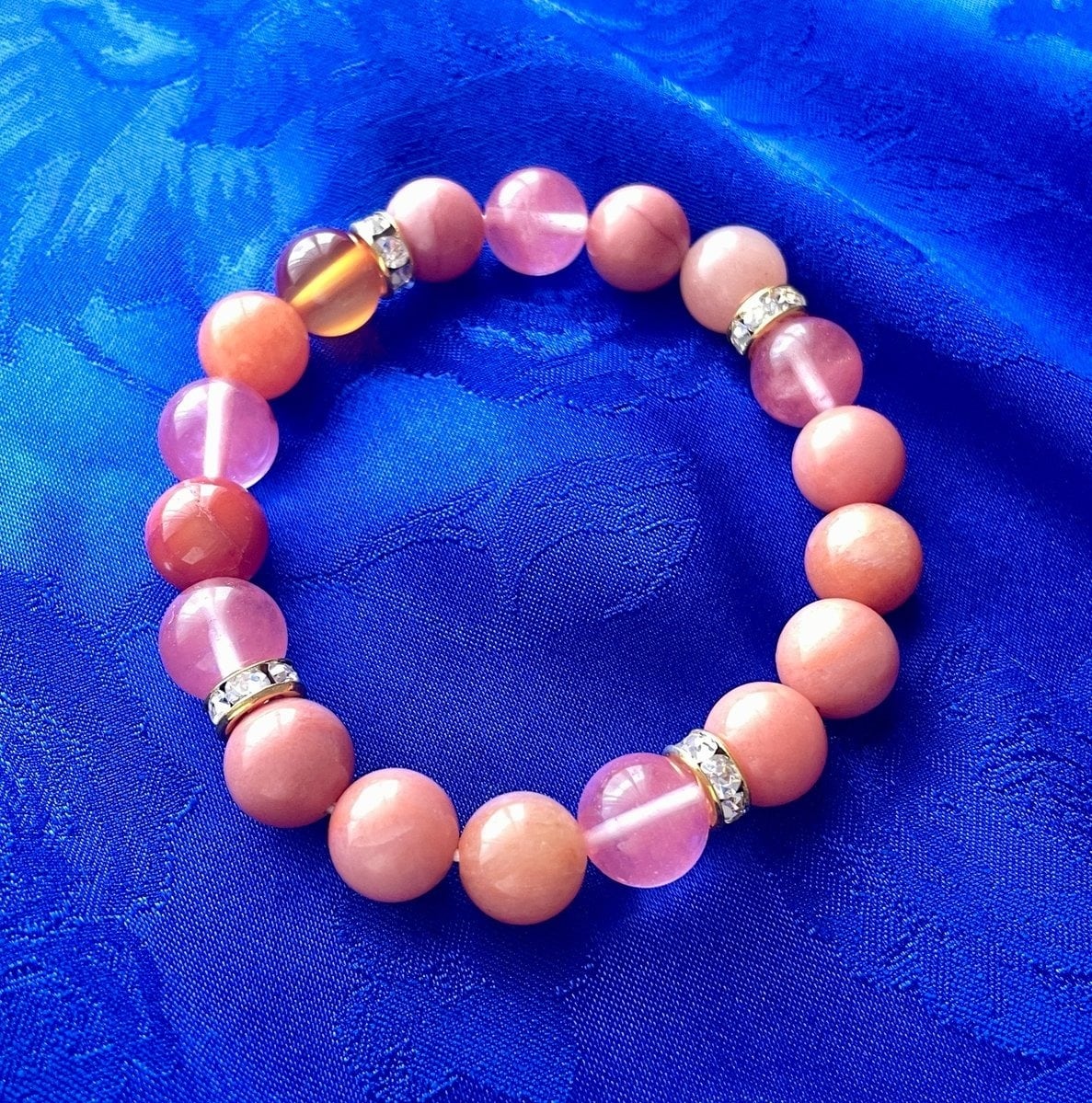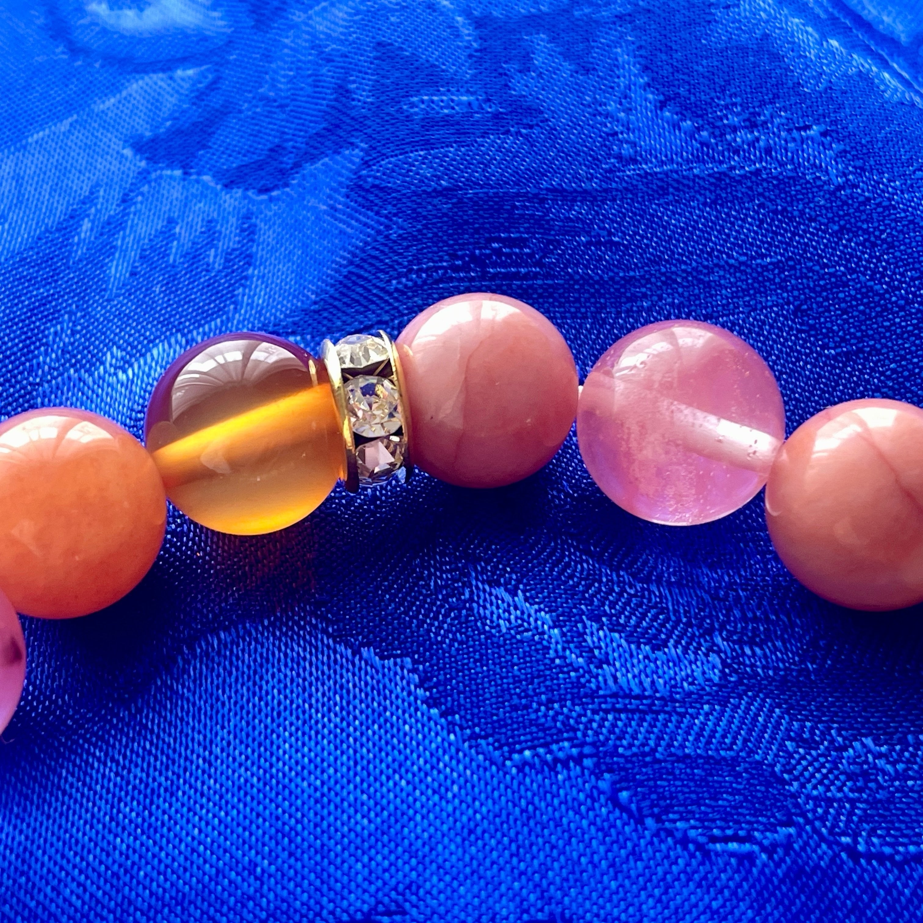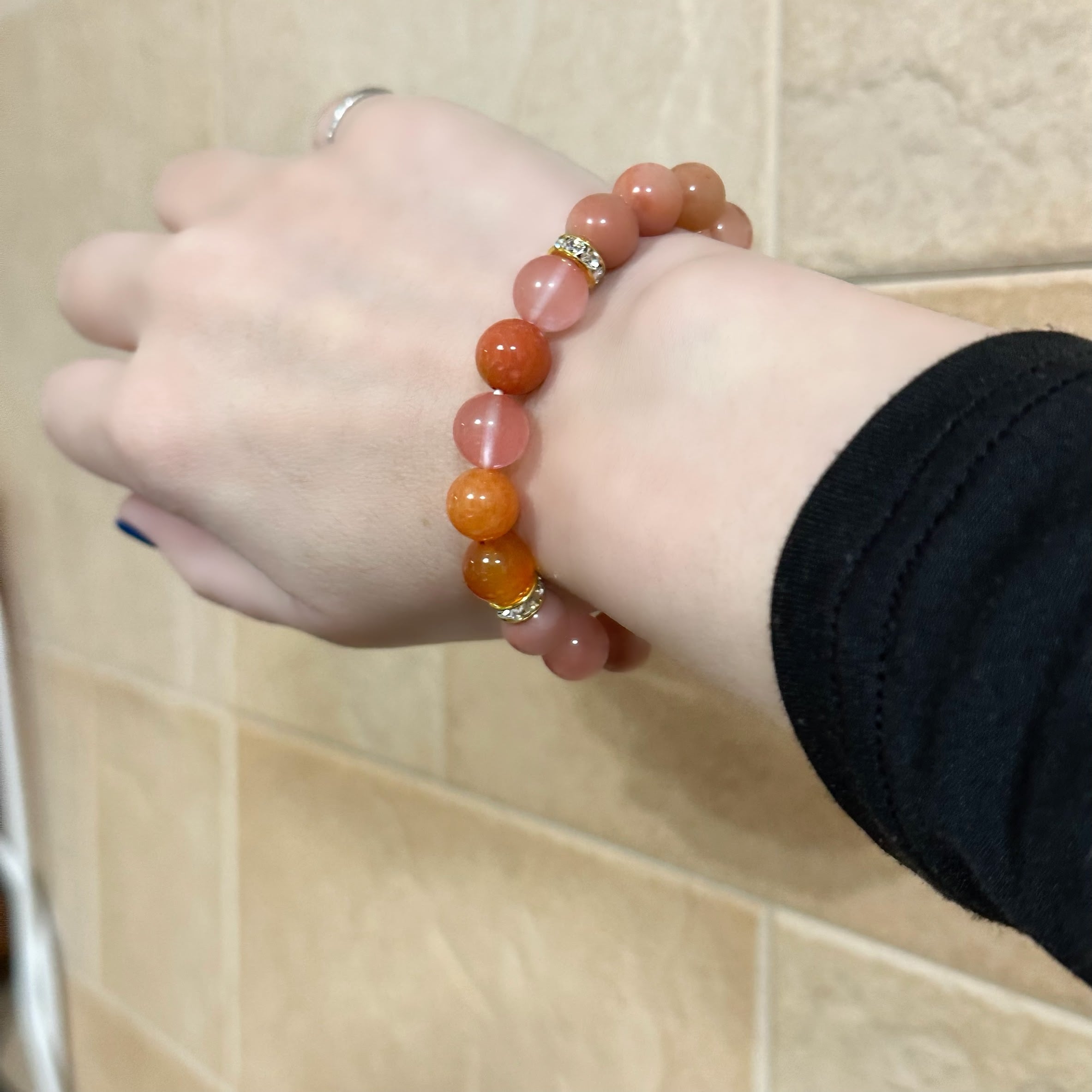 心身の調和をもたらすアベンチュリン、安定と癒しを大切にした瑪瑙(めのう)、勇気と行動力を高めるカーネリアンを組み合わせた、エネルギーバランスに優れたブレスレットです