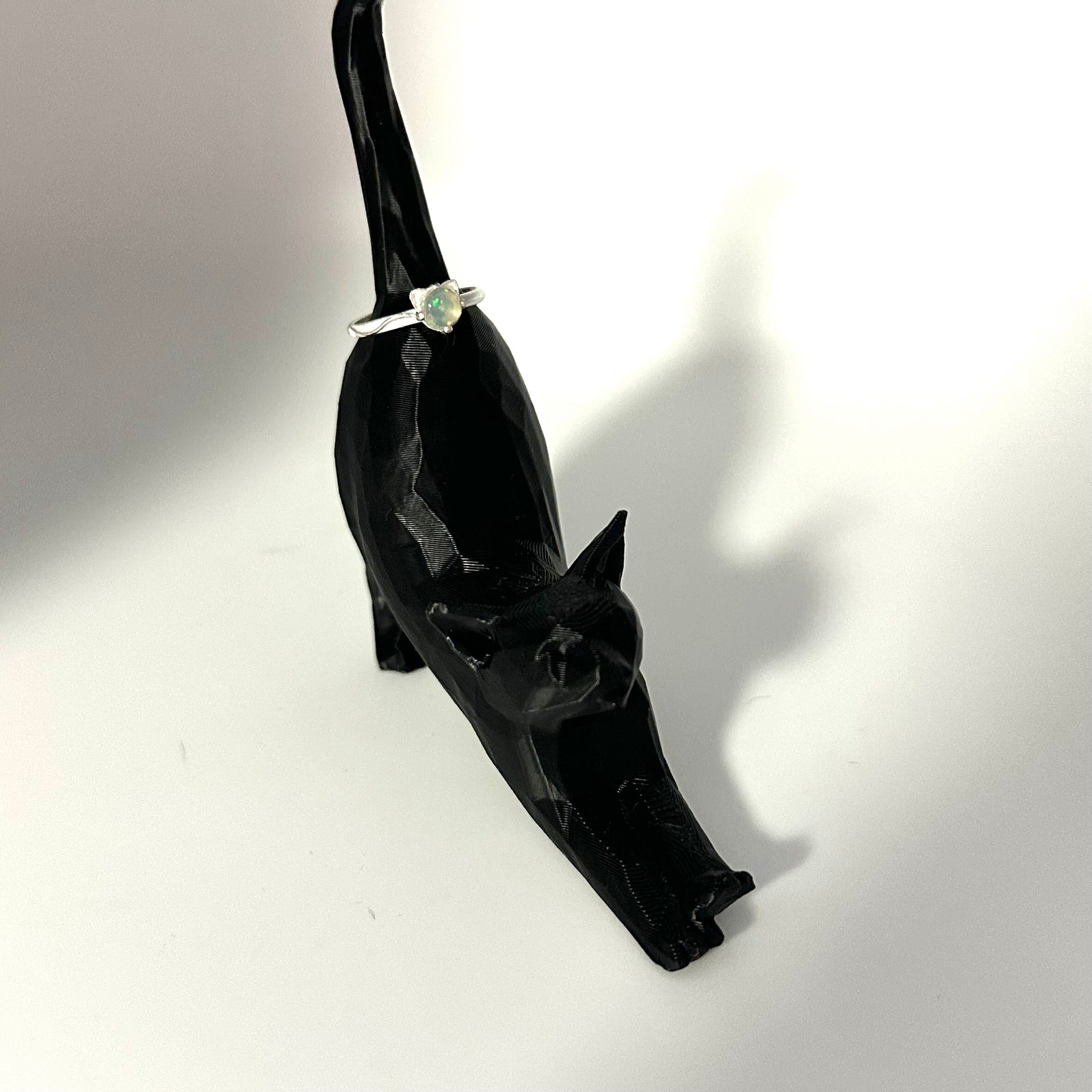 愛らしい猫ちゃんが指先を彩る、オパールを石留めした猫ちゃんリングです。猫好きさんの方々にぴったりの一品ですが、猫に興味のない方々にもおすすめしたい逸品です!猫ちゃんのお顔部分には可憐なオパール0.33ctがセットされており、指元を上品に演出する商品です。サイズ変更可能です