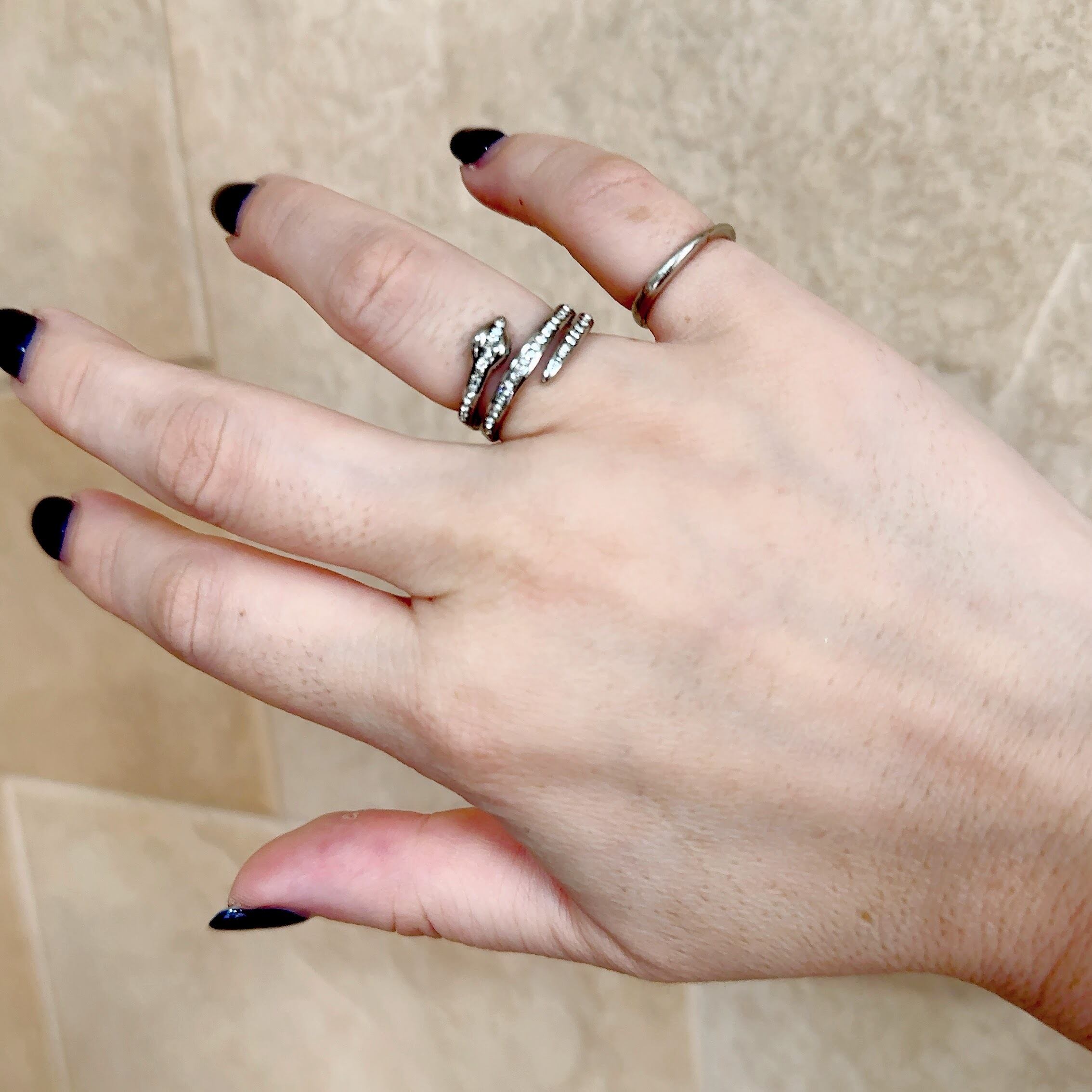 指元に絡むように美しく輝く、蛇モチーフのフリーサイズリング。ゴールドとシルバー、2色から選べるデザインは、華やかさとスタイリッシュさを兼ね備え、日常使いから特別なシーンまで幅広く活躍します。