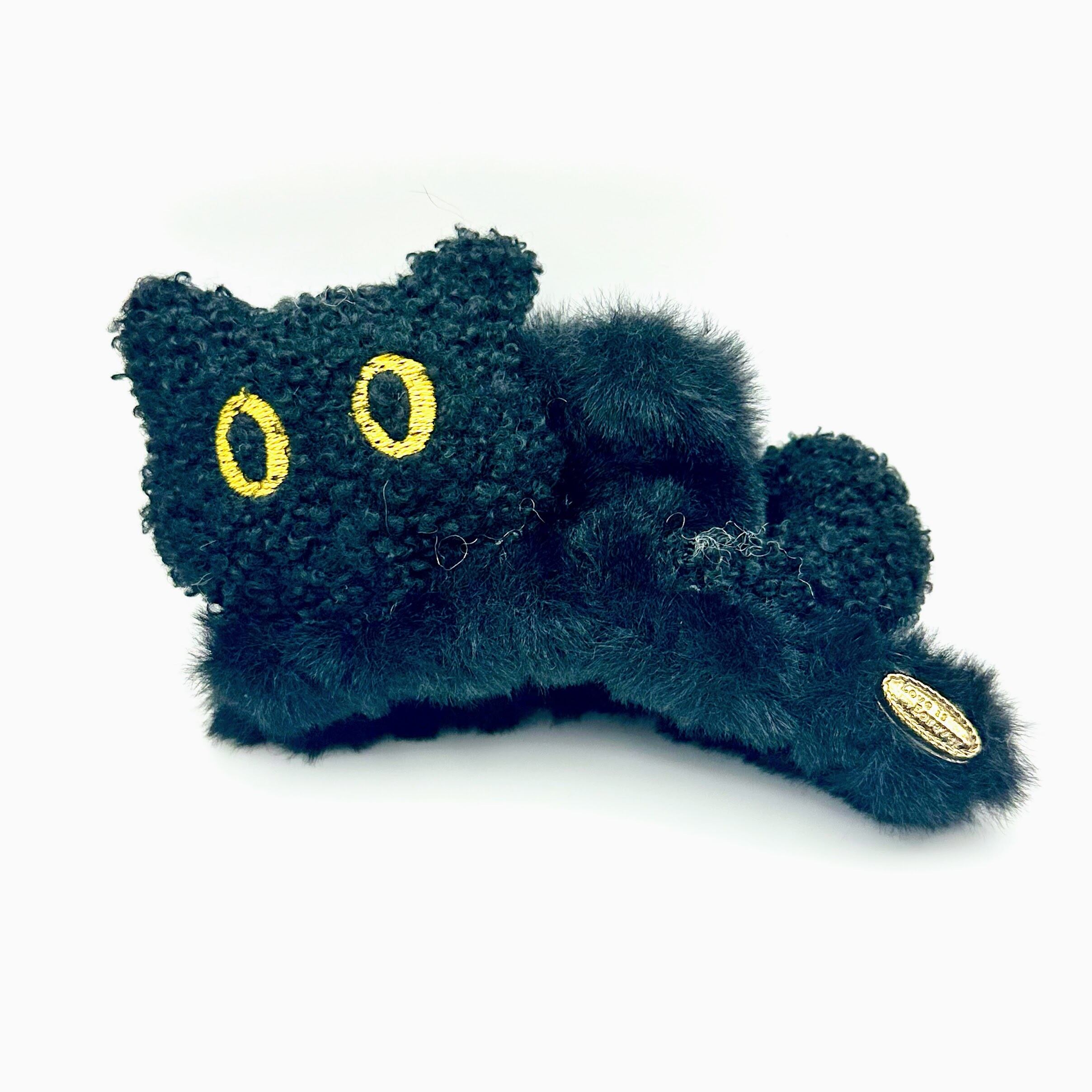 まるでぬいぐるみのような、ふわふわモコモコの黒猫がそのまま髪にとまったような愛らしいヘアクリップ。きらりと光る黄色い瞳がチャームポイントで、まるであなたをそっと見守ってくれているよう——。