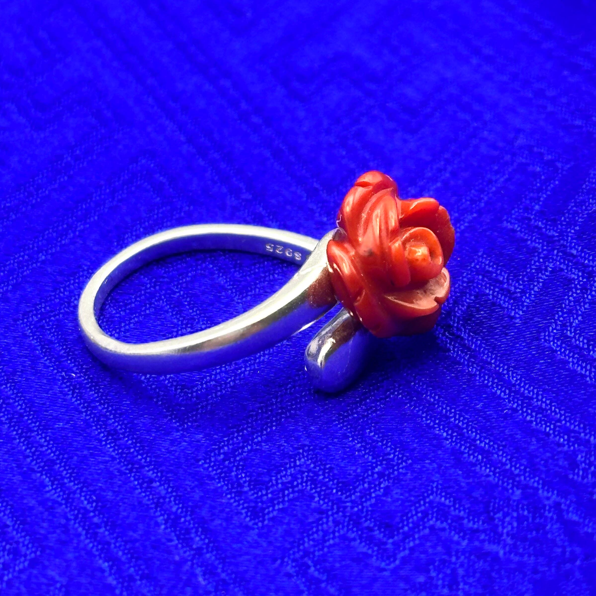 赤珊瑚 薔薇彫刻リング|天然石×フリーサイズで咲く花ジュエリー