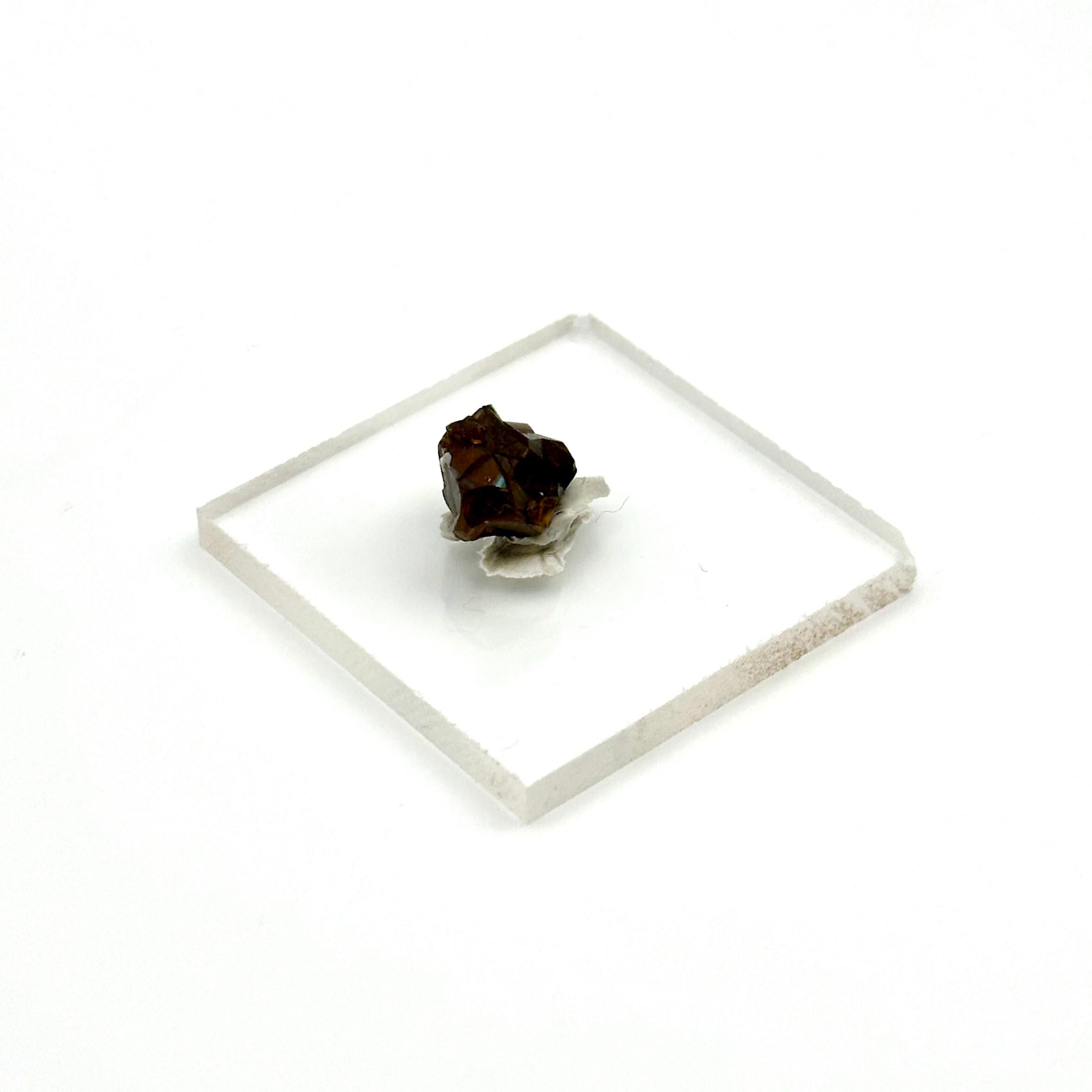 付属のアクリル板と粘土で、届いてすぐに石を立てて飾ることができます。レインボーガーネット特有の虹彩干渉がきらめき、まるで宝石のような美しさを楽しめます。