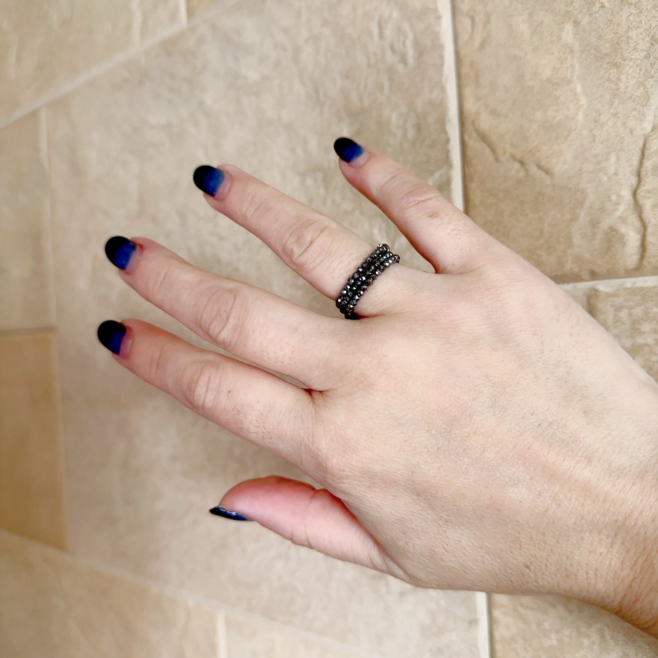 きらめくスターカットが施されたテラヘルツを使用した、形状記憶フリーサイズリングです。内部に形状記憶ワイヤーを組み込むことで、指に合わせて柔らかくフィットし、快適な着け心地を実現しました。