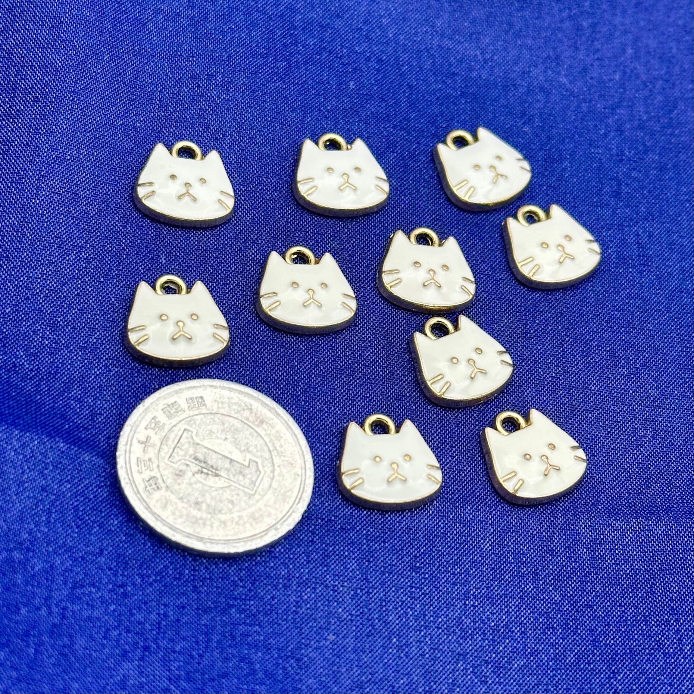 白猫フェイスチャーム 10個セット|ホワイト×ゴールドエナメル ハンドメイドパーツ