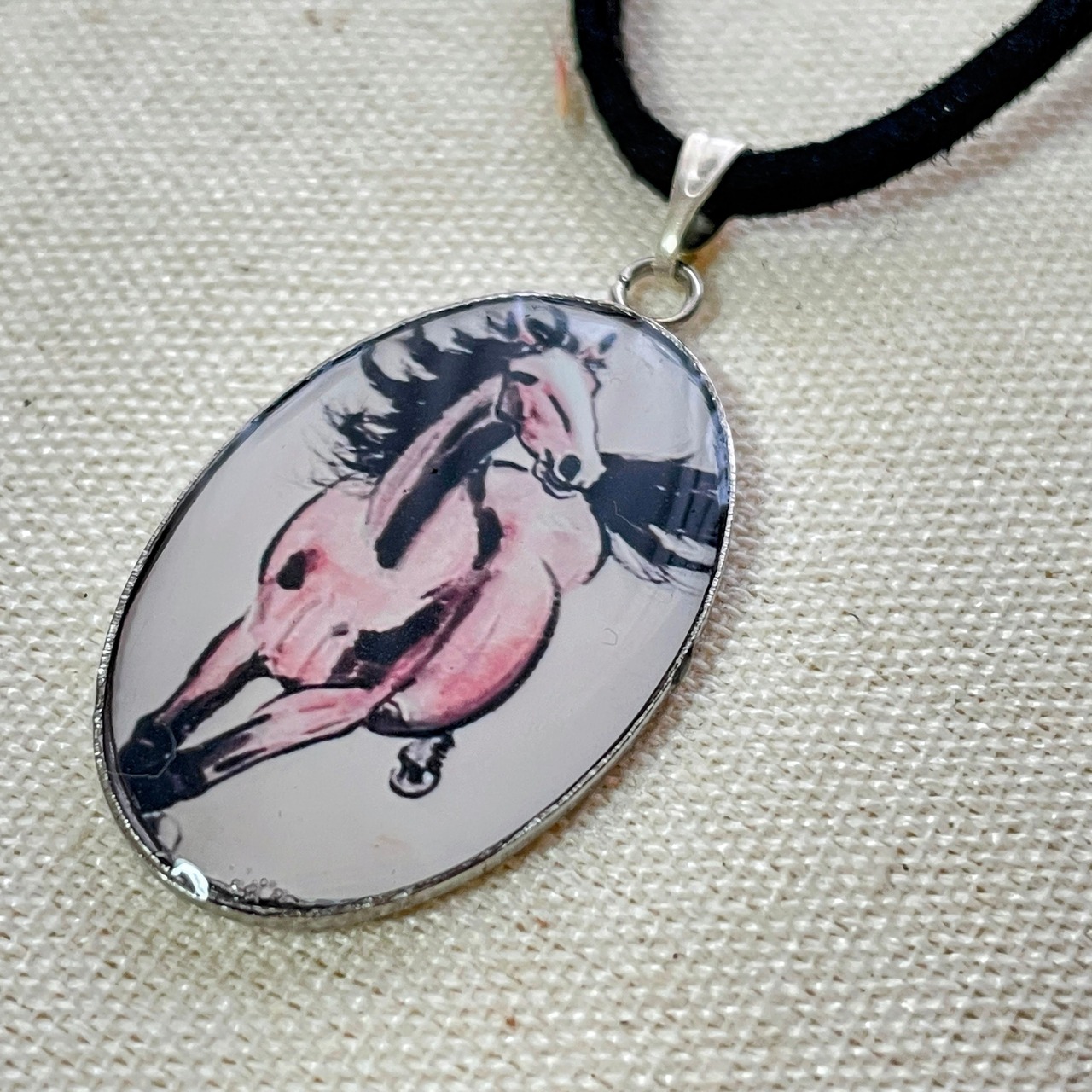 力強く駆ける馬を描いた「駿馬図」をそのまま切り取ったアートネックレス。