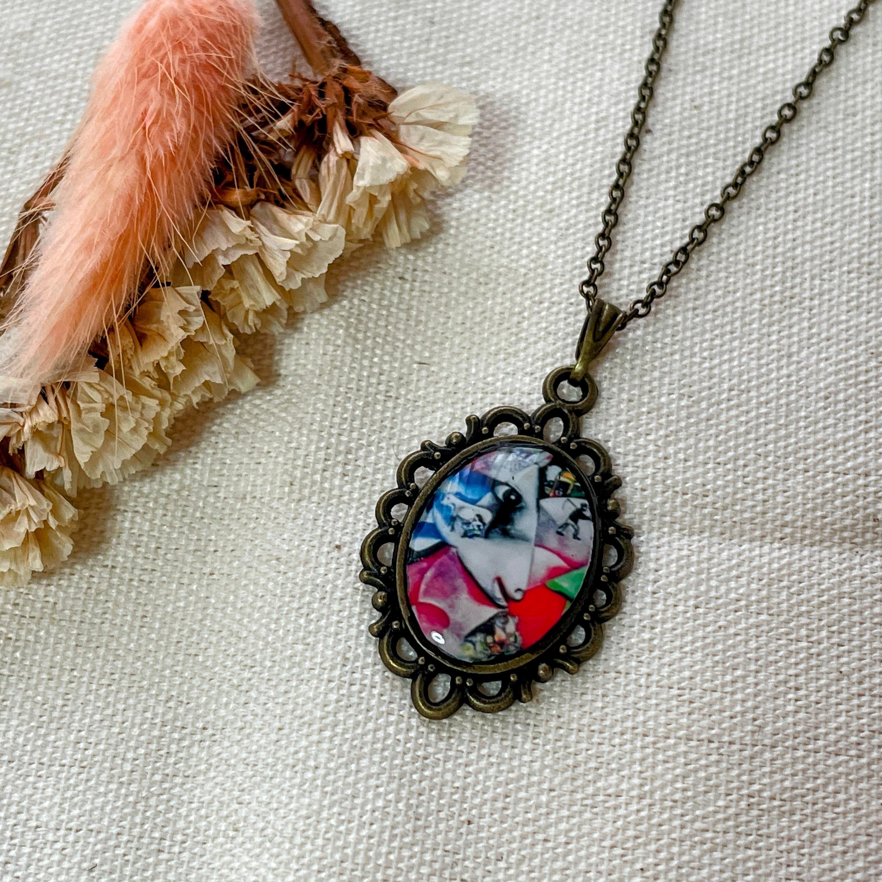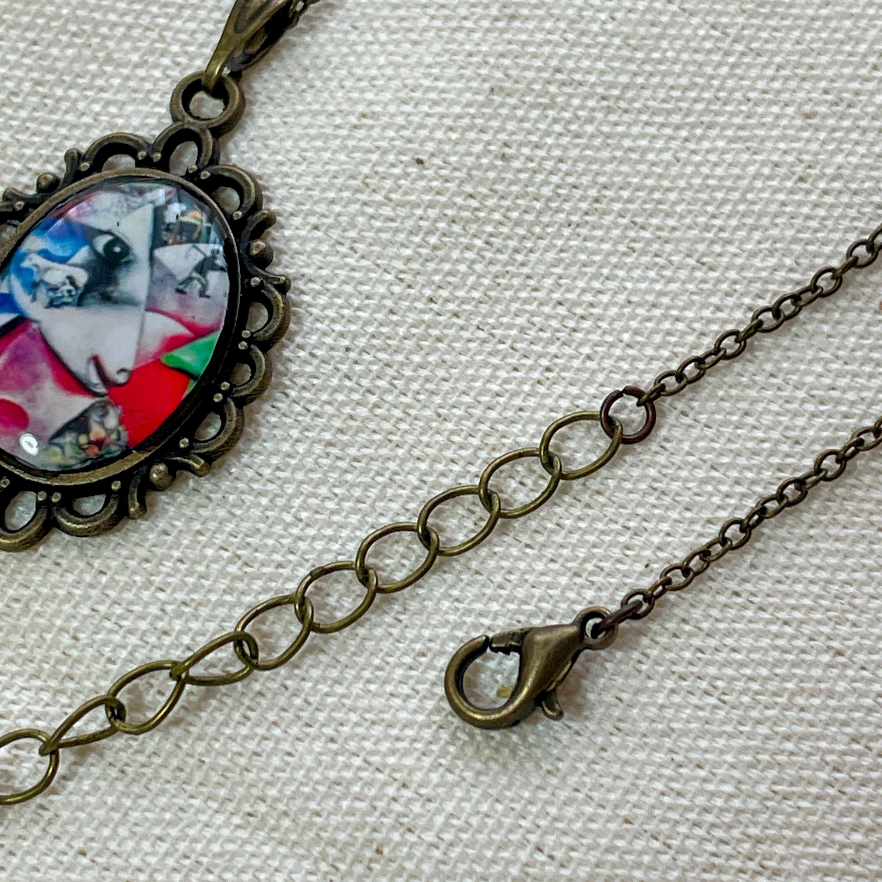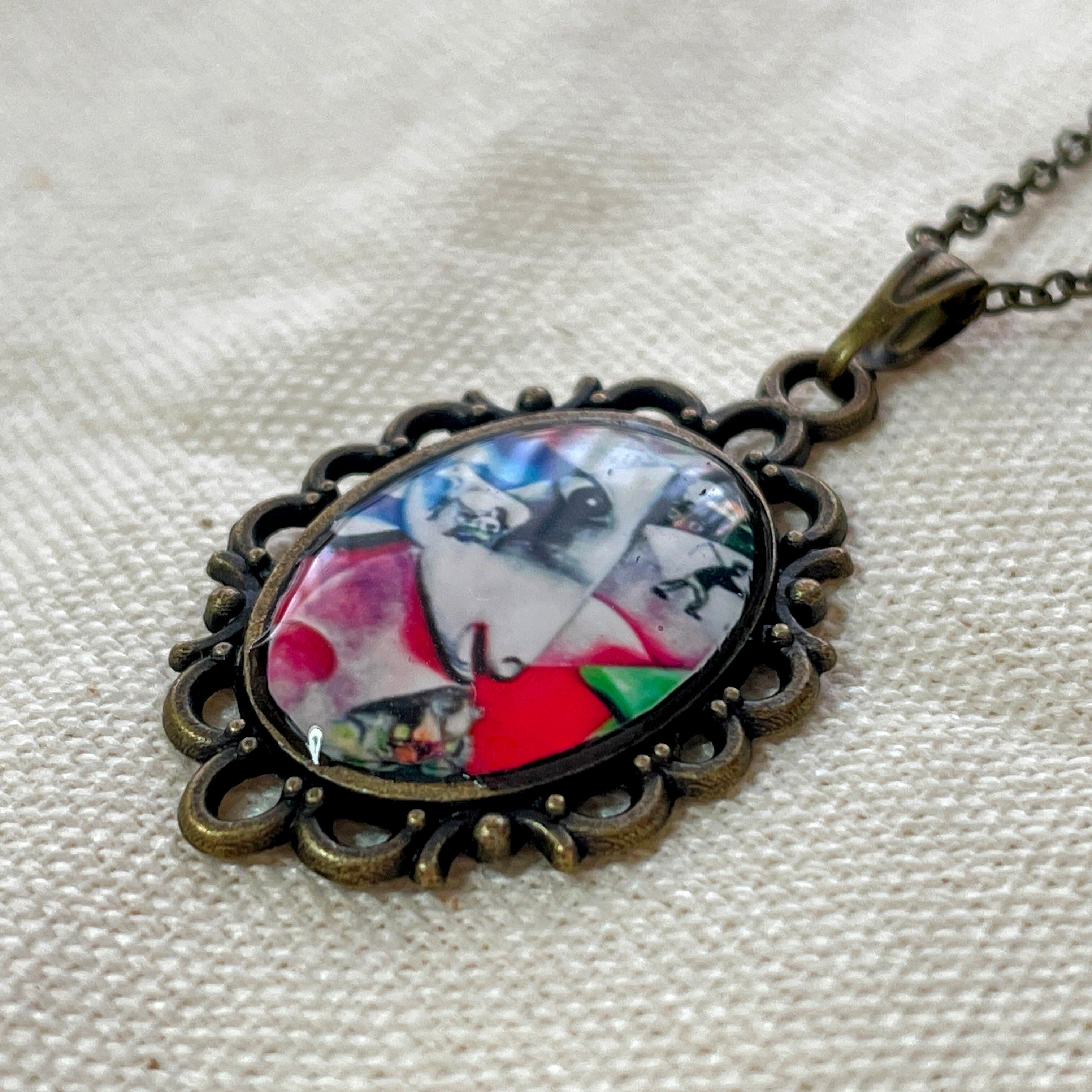 幻想的で詩的な世界観をもつ画家、マルク・シャガールの代表作《私と村(I and the Village)》をモチーフにしたアートネックレスです。