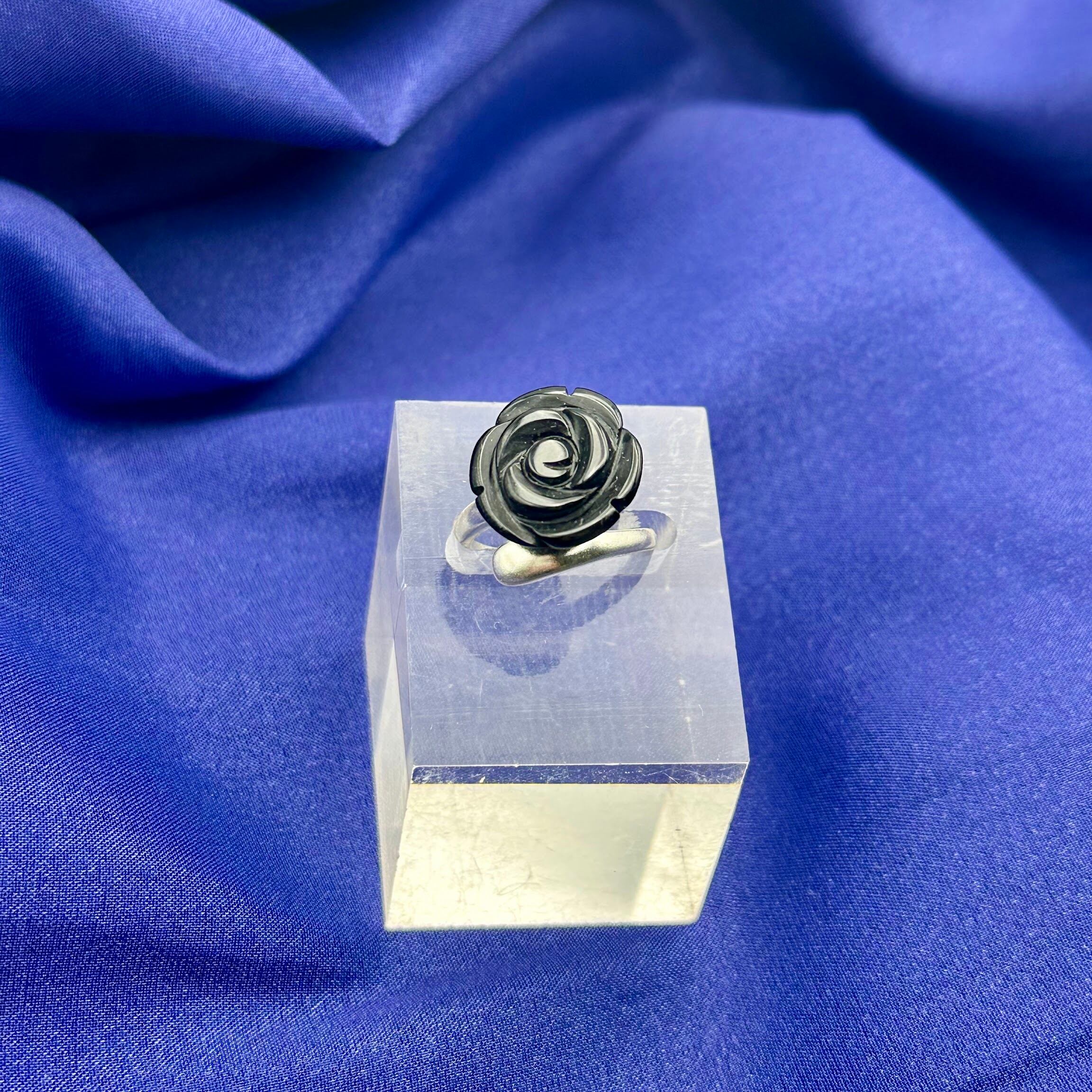 こちらは天然石オニキスを薔薇の花に精緻に彫刻したフリーサイズリングです。