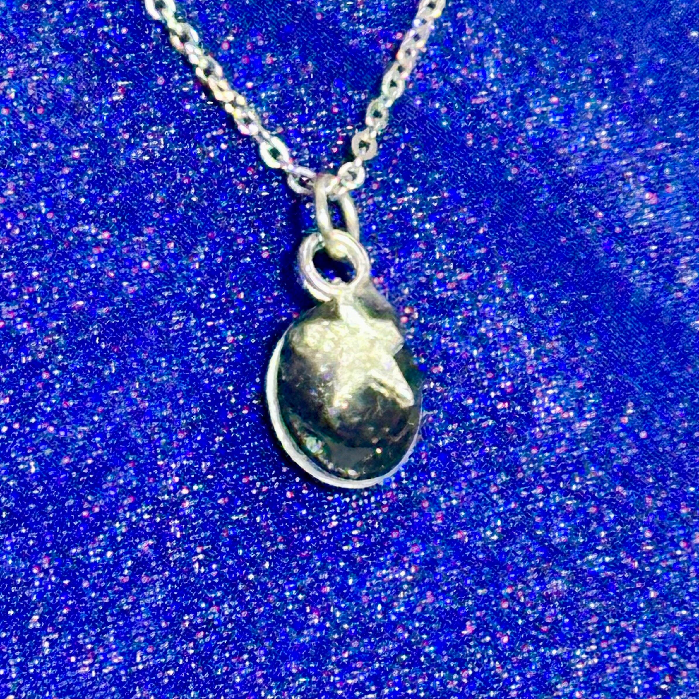 裏側を透明なレジンで丁寧に包み込み、きらめくシルバーの星モチーフをあしらいました。