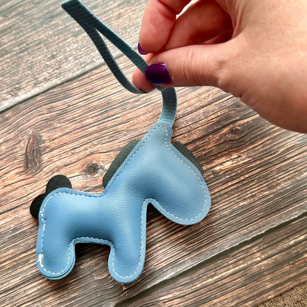柔らかなレザーの質感と、愛らしいシルエットが魅力。持ち歩くだけで心が和む、あなただけのお守りとしてぴったりです。通し穴がついているので、バッグの紐やリボン、キーホルダーに簡単に通せてアレンジも自由自在。