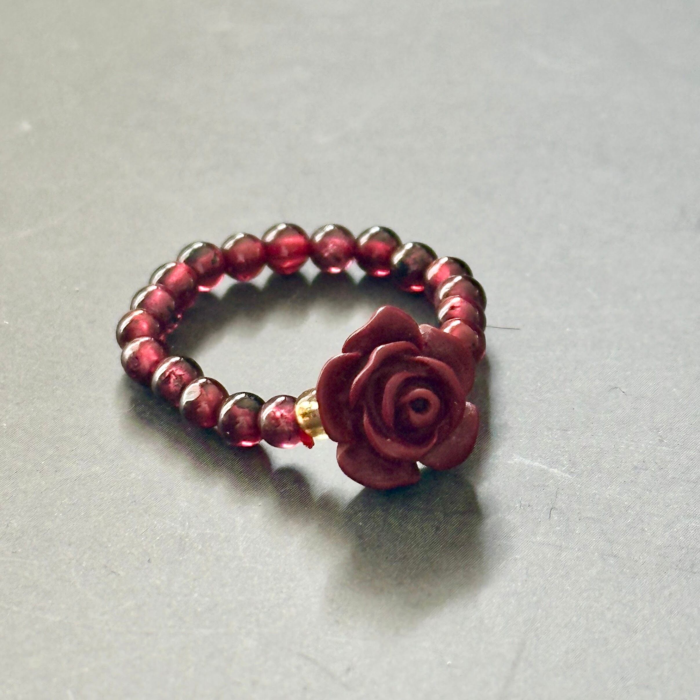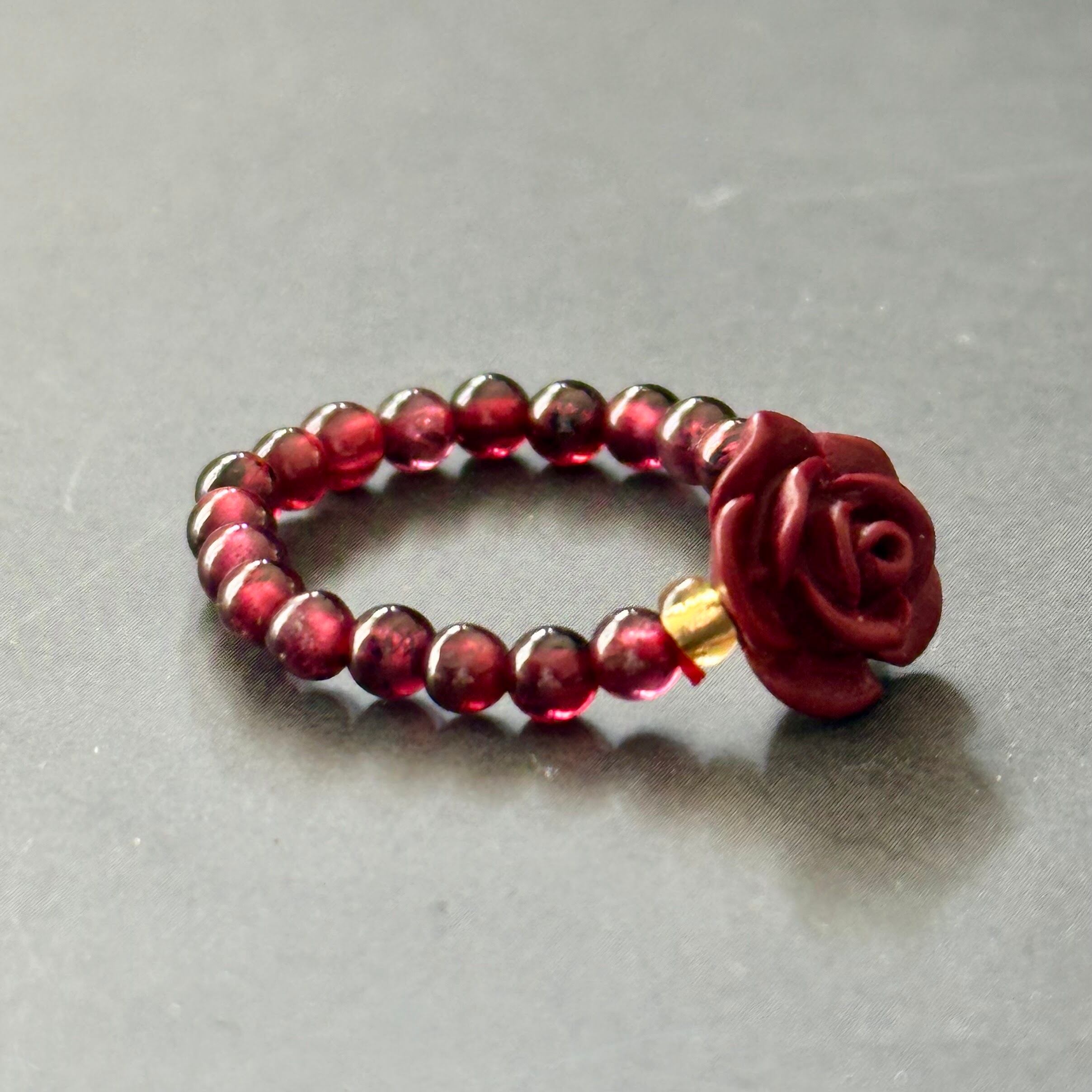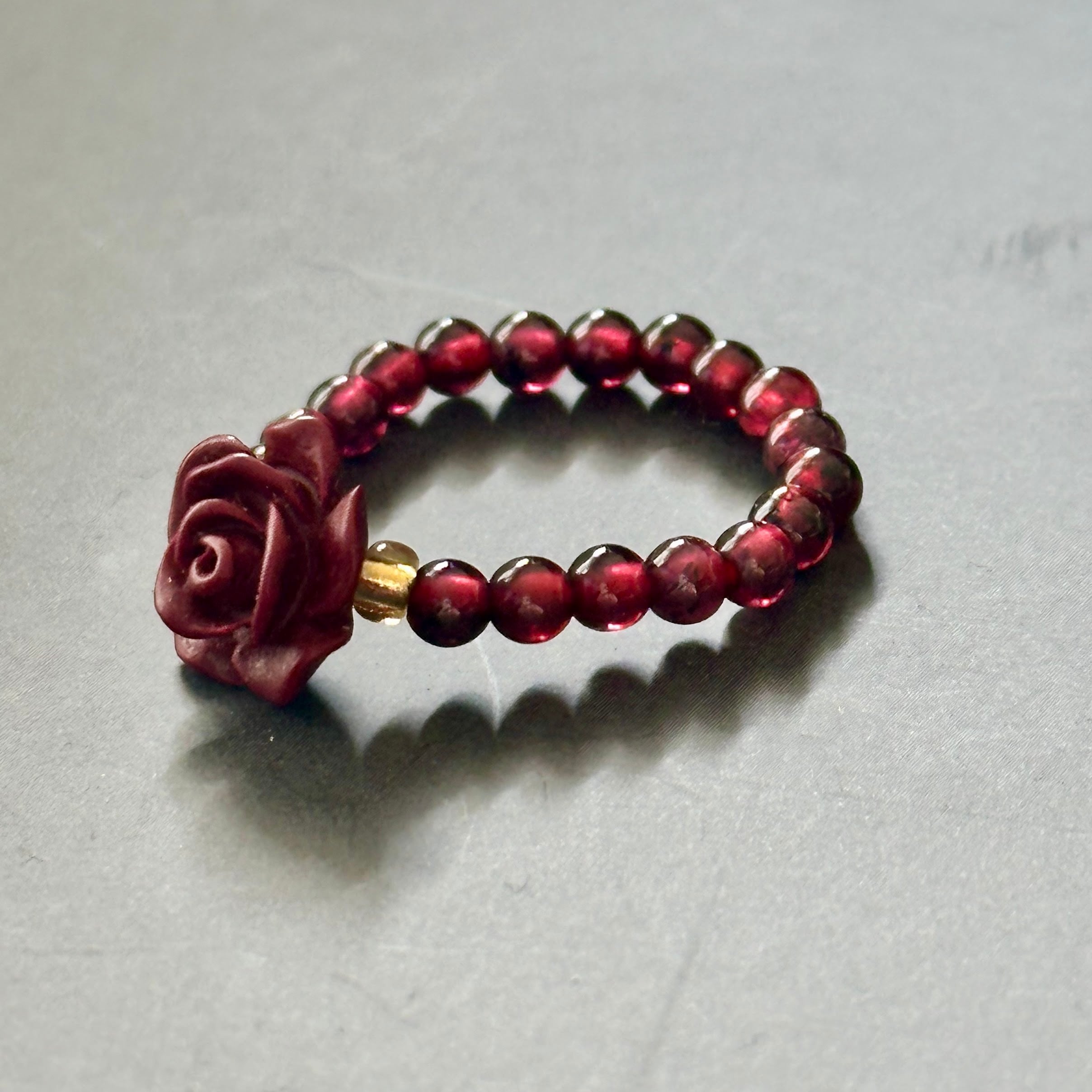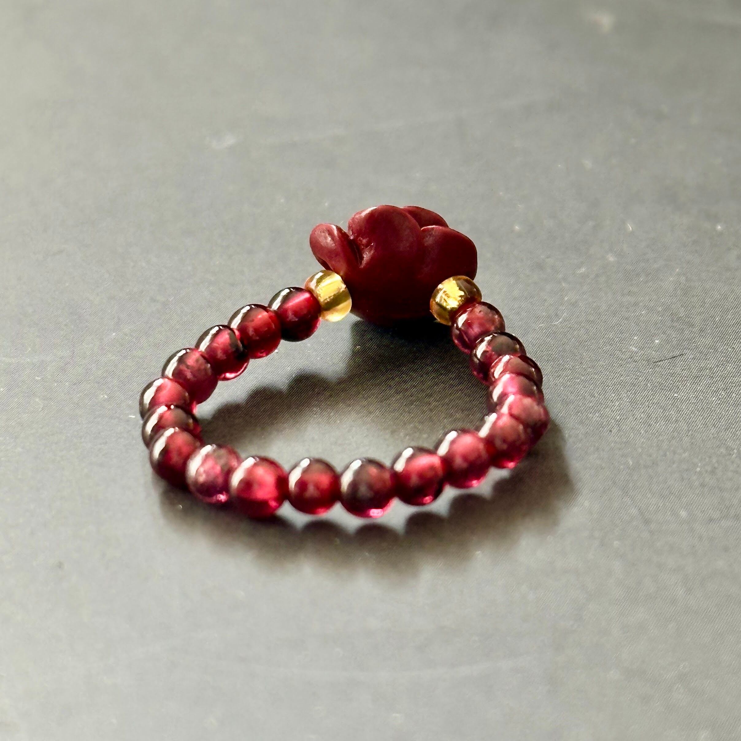 ガーネット天然石ビーズリング|辰砂の薔薇