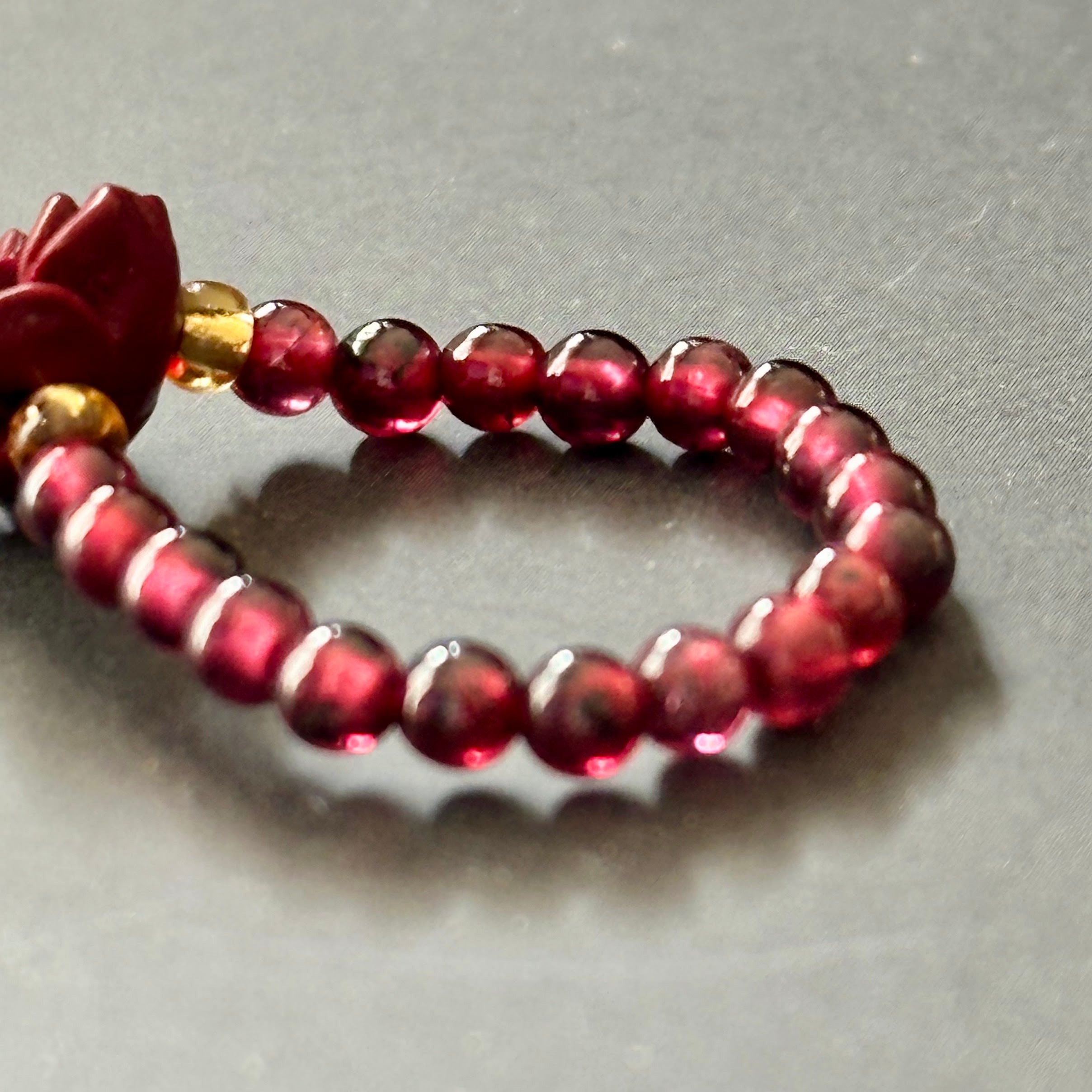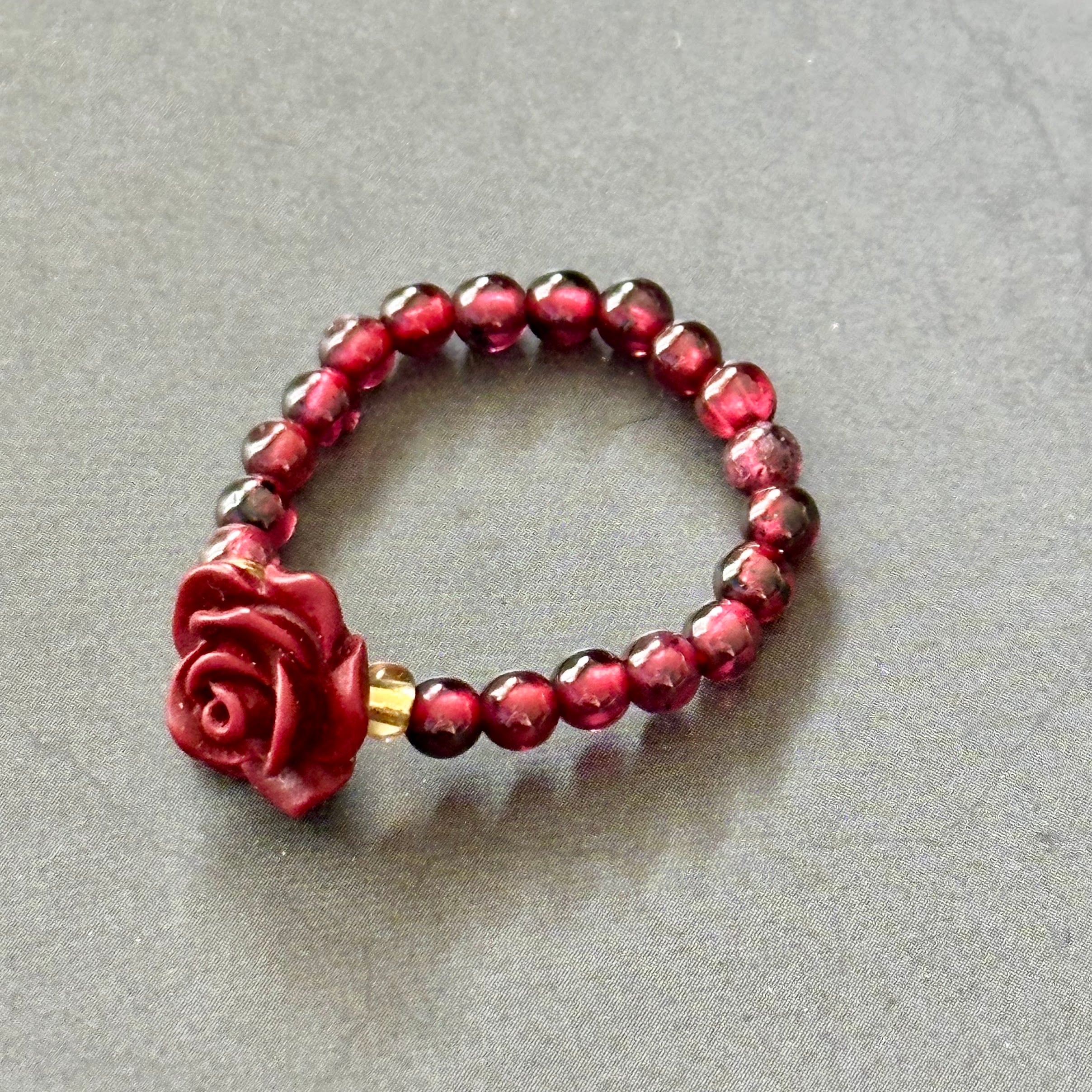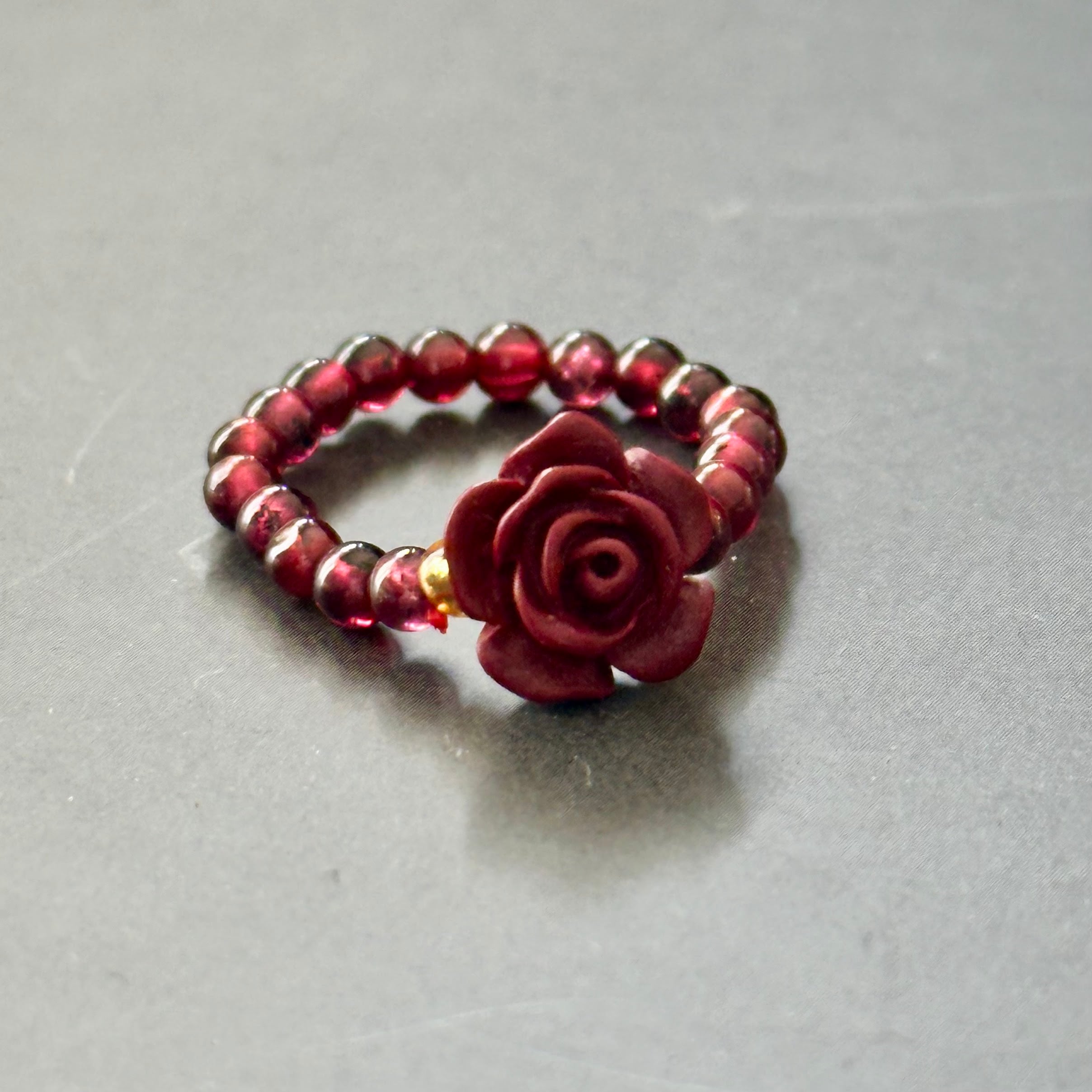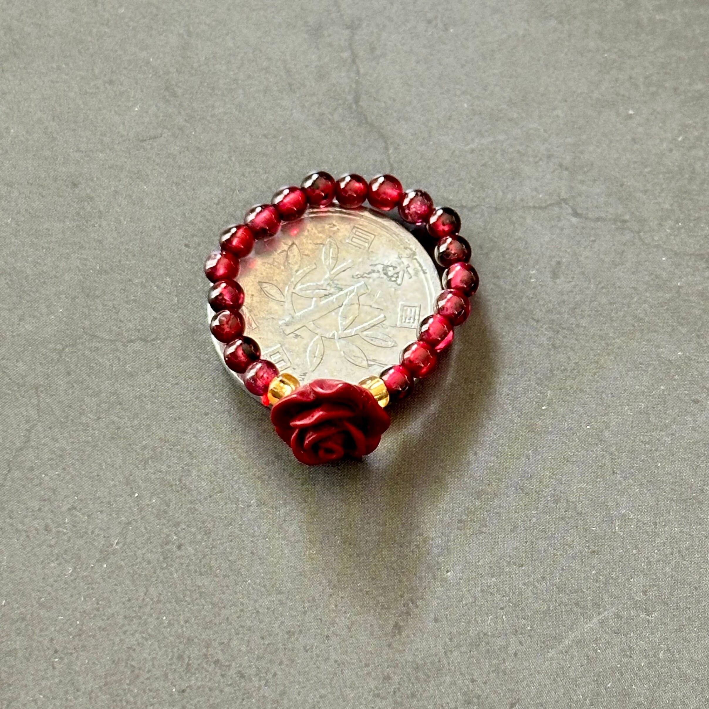 ガーネット天然石ビーズリング|辰砂の薔薇