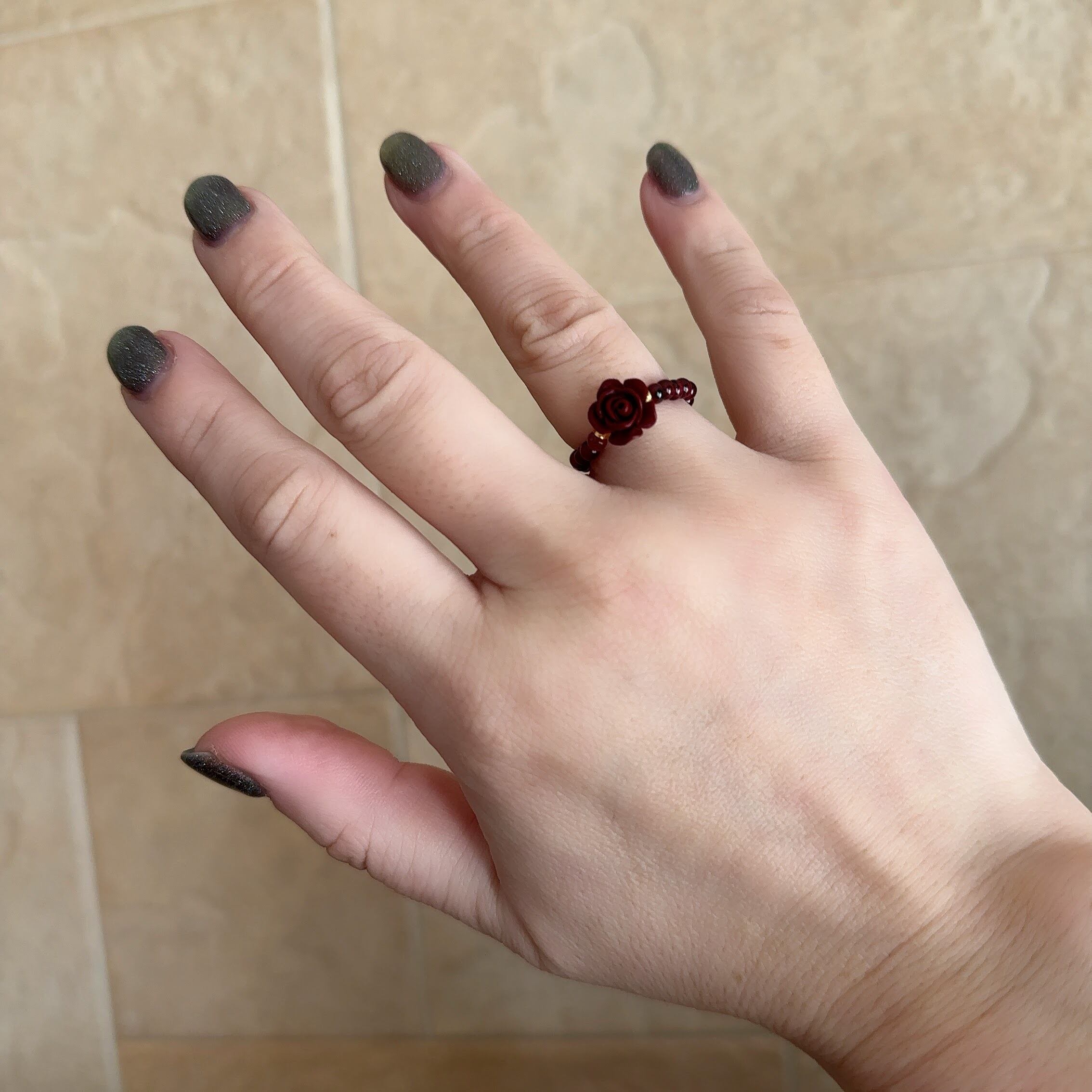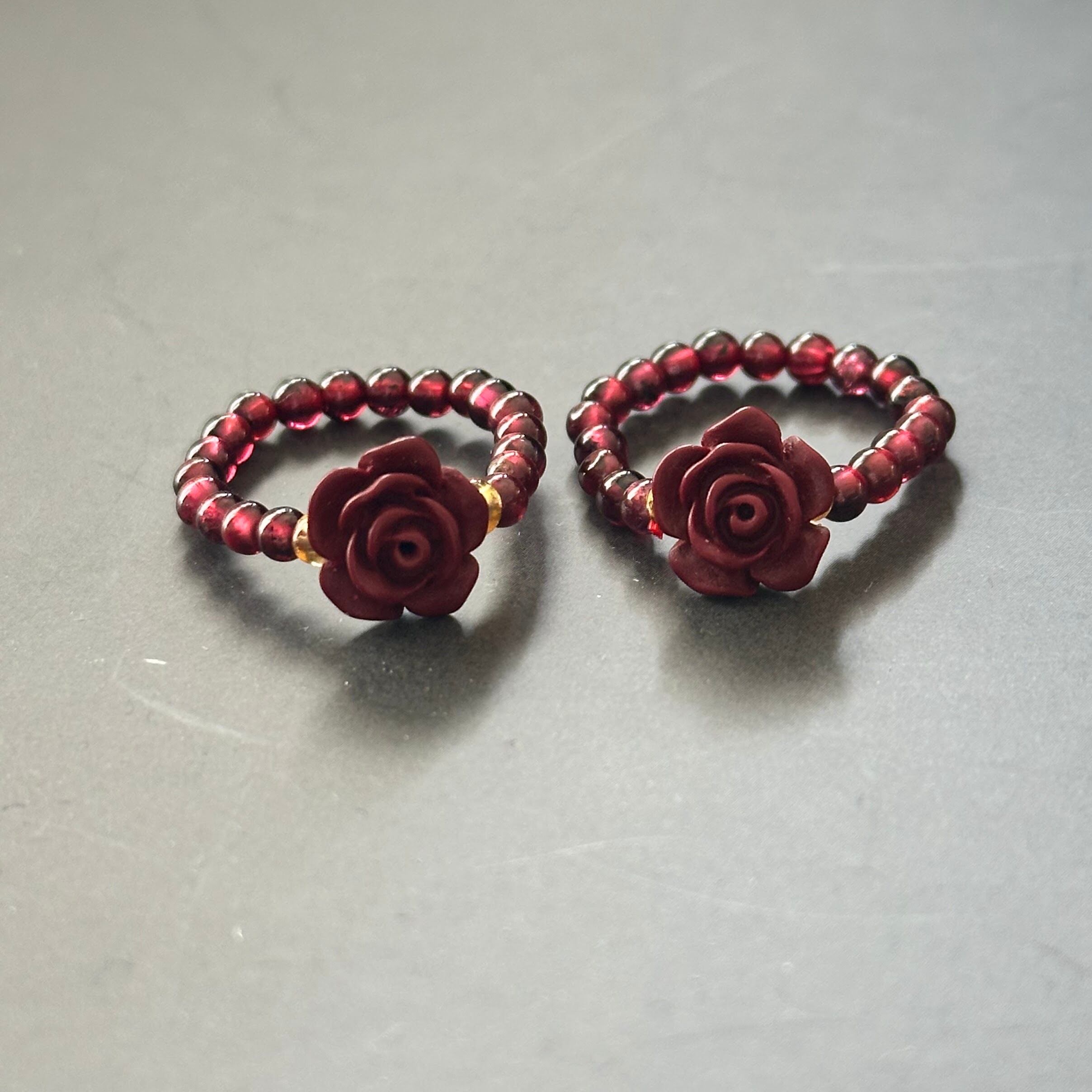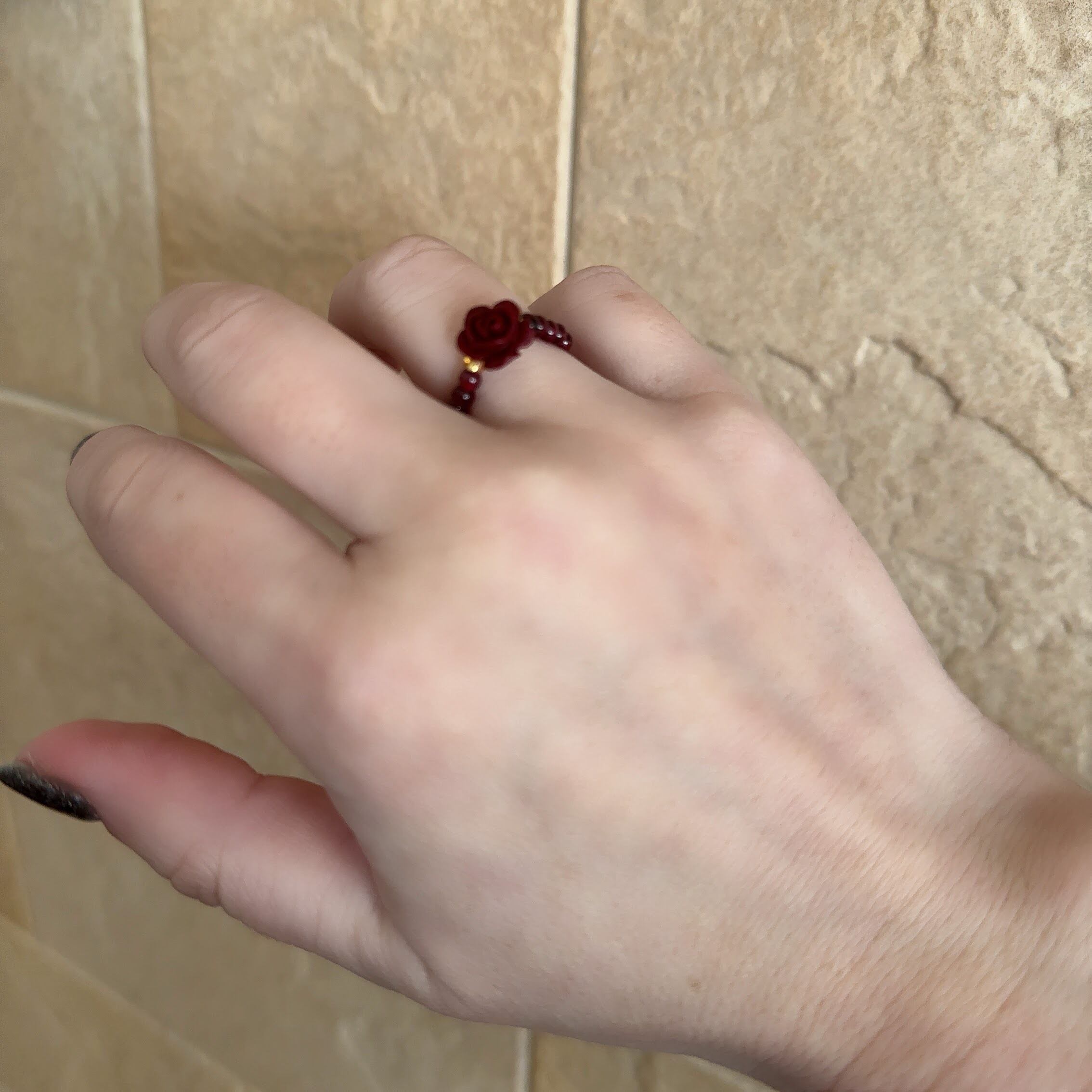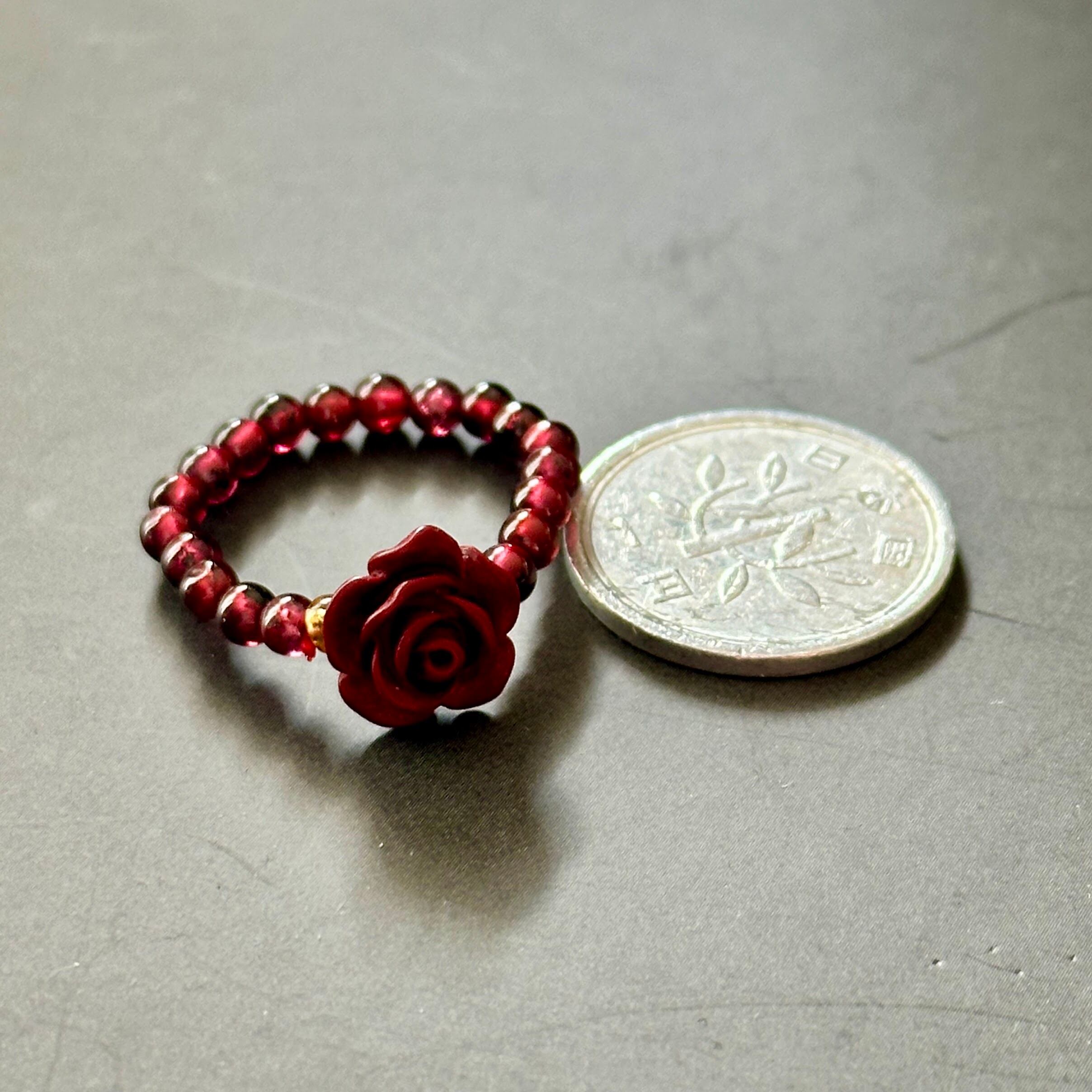 ガーネット天然石ビーズリング|辰砂の薔薇