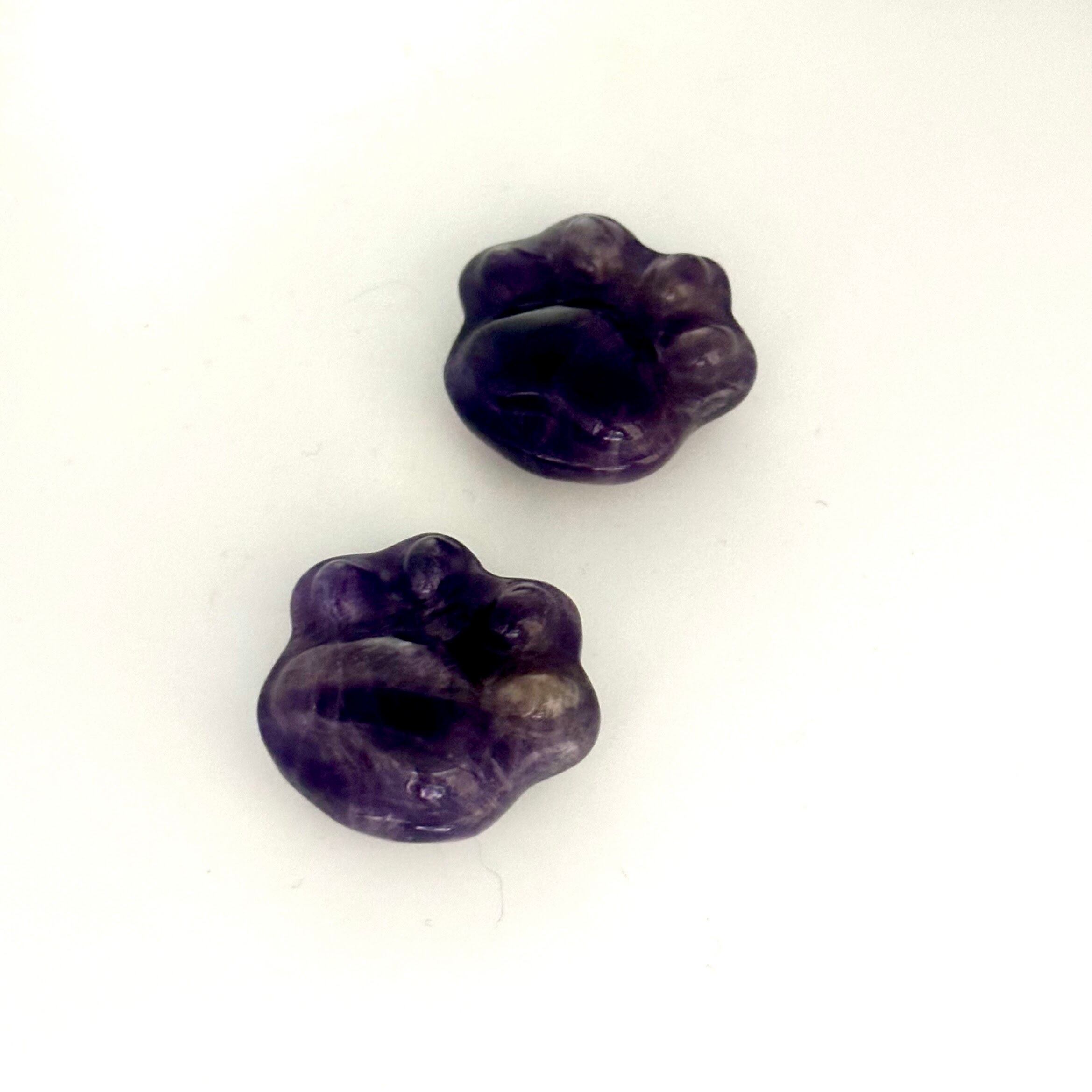 ころんとしたフォルムが愛らしい、肉球モチーフのアメジスト天然石。