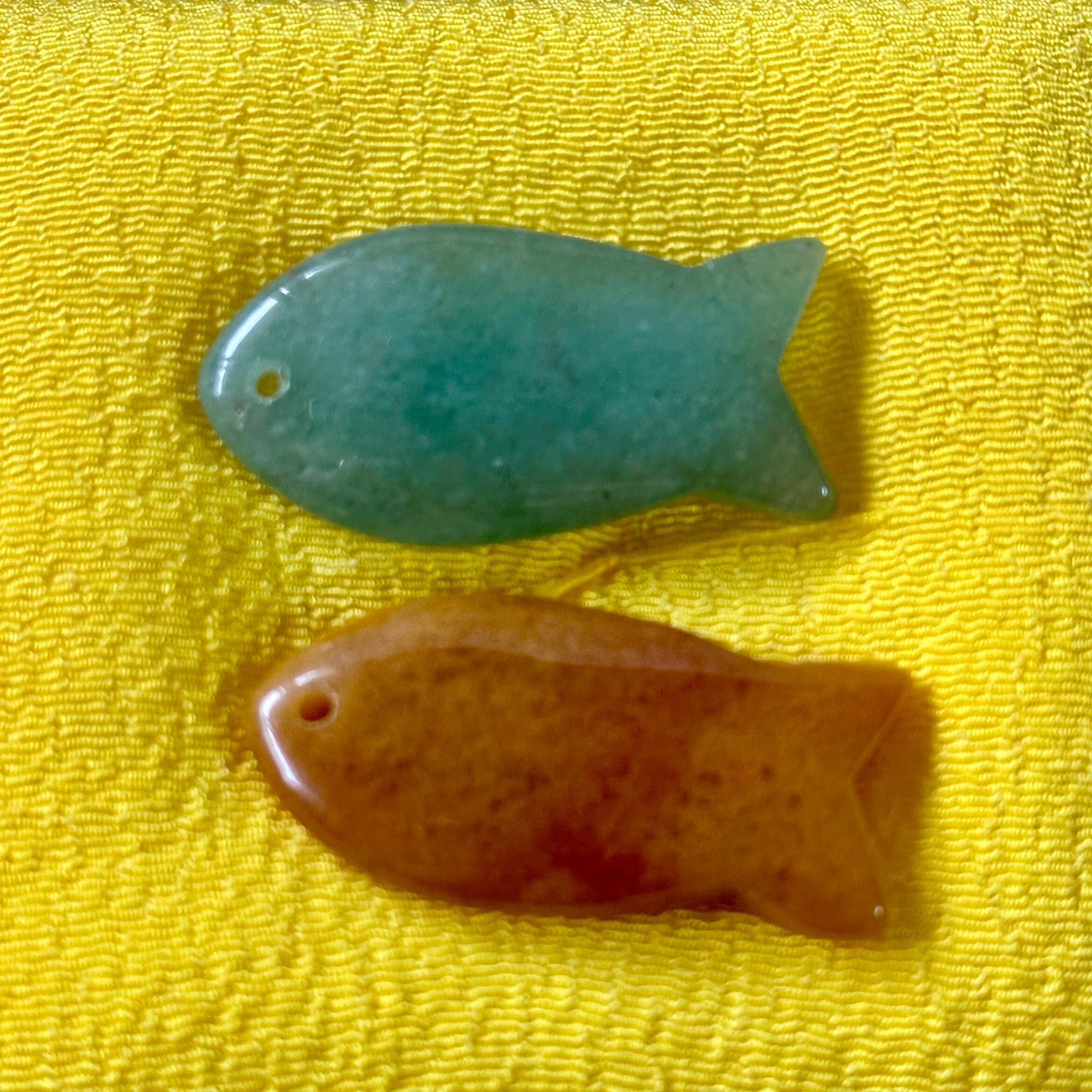 魚モチーフ天然石チャーム2個セット|グリーンアベンチュリン&トパーズの通し穴付きペンダントTOP