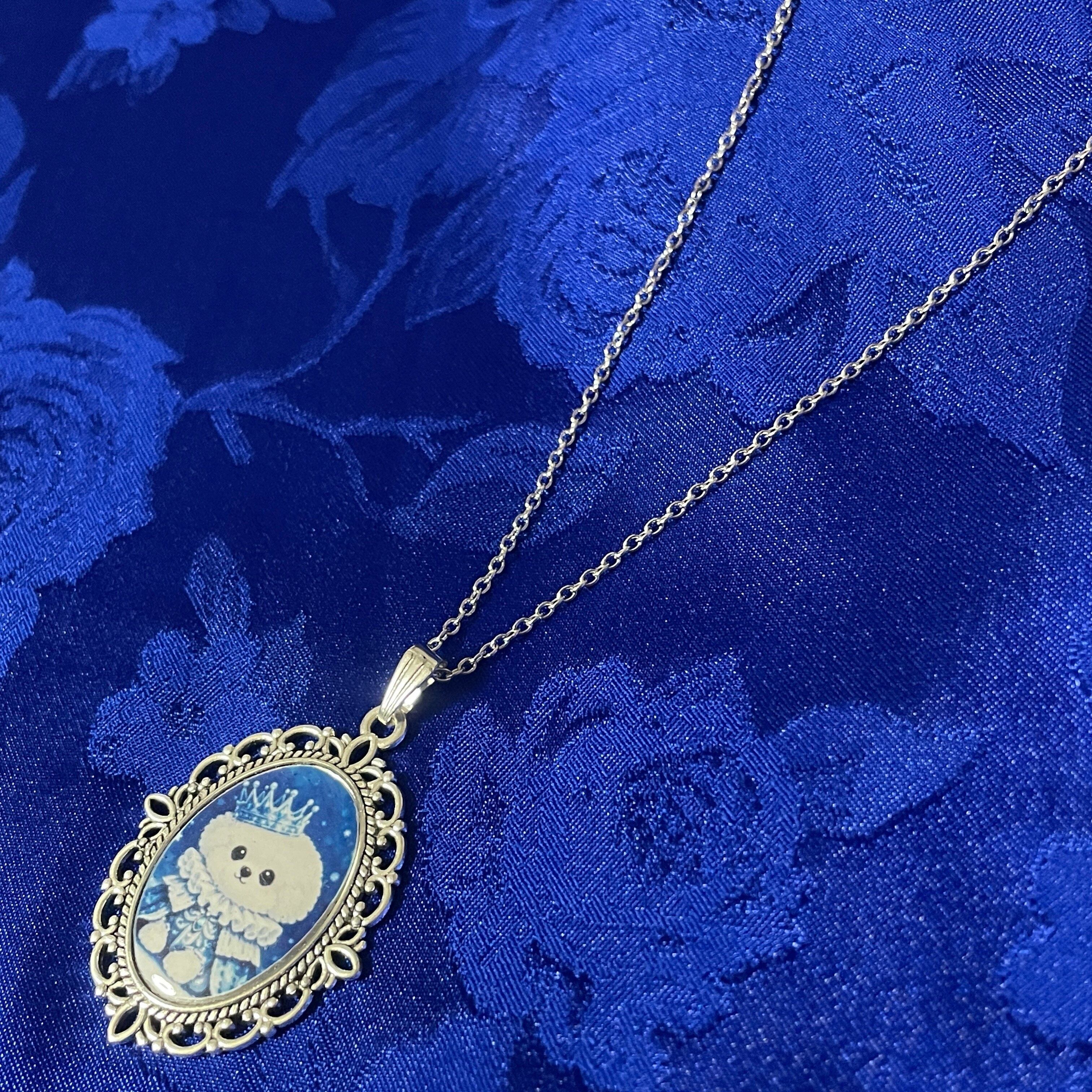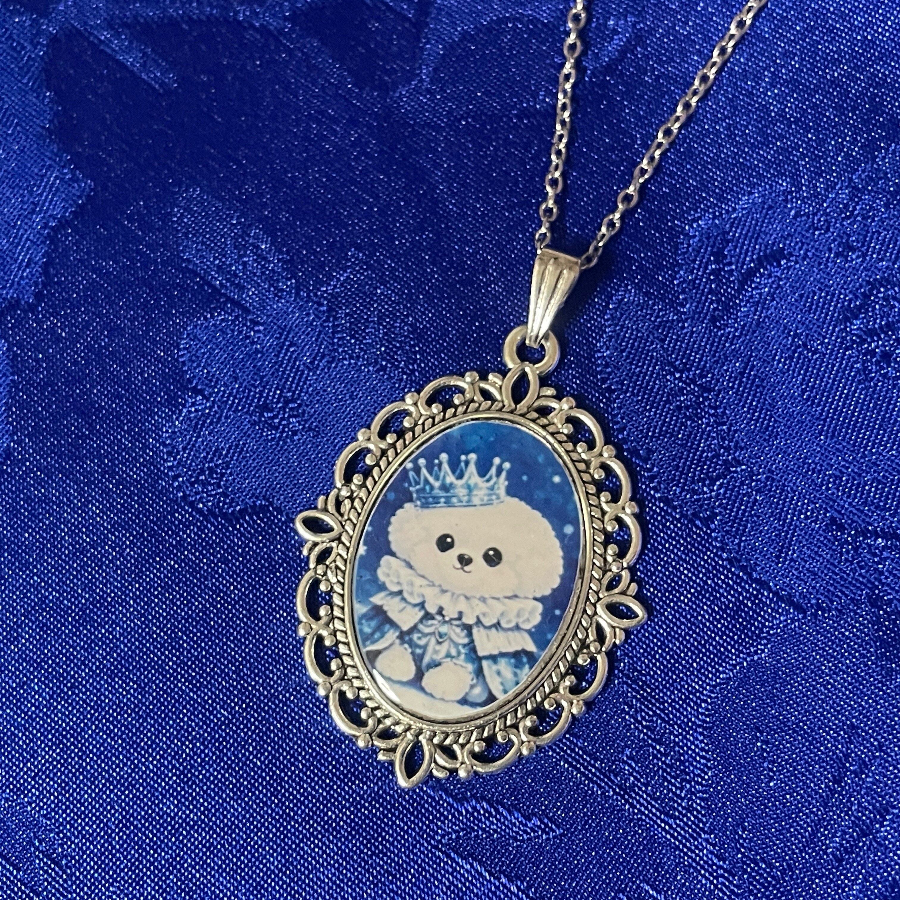 ビションフリーゼ ネックレス|王冠モチーフのもこもこ犬アクセサリー・アンティーク調お守りジュエリー