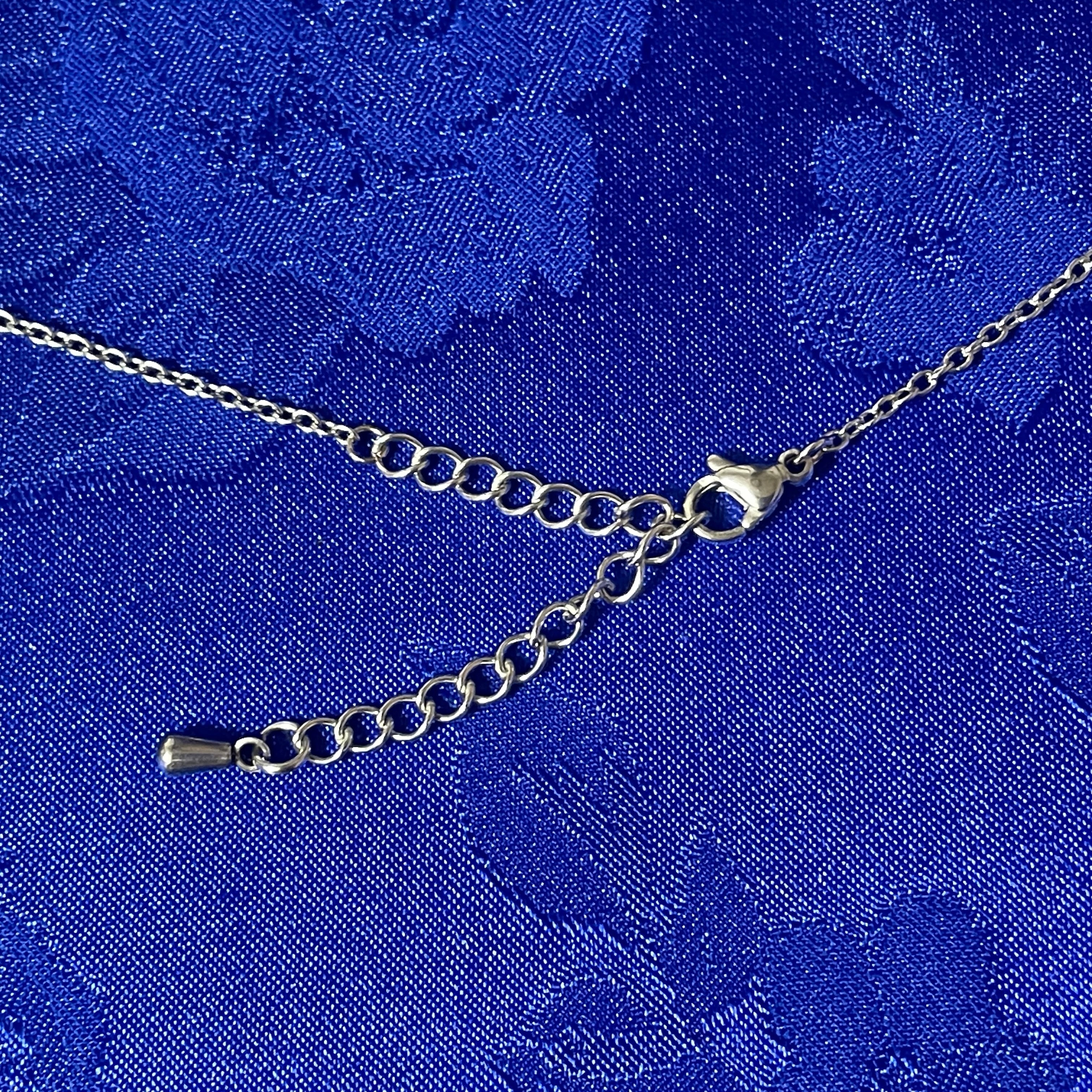 そこに王冠モチーフを重ねることで、「守護・成功・自信」を意味するお守りネックレスに仕上げました。