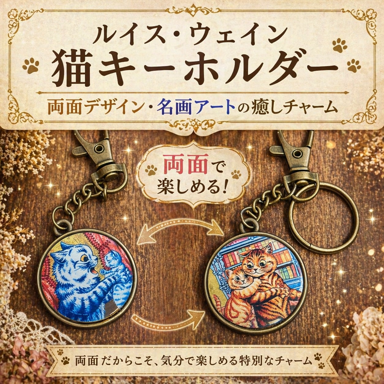 ルイス・ウェイン猫キーホルダー|両面デザイン・名画アートの癒しチャーム