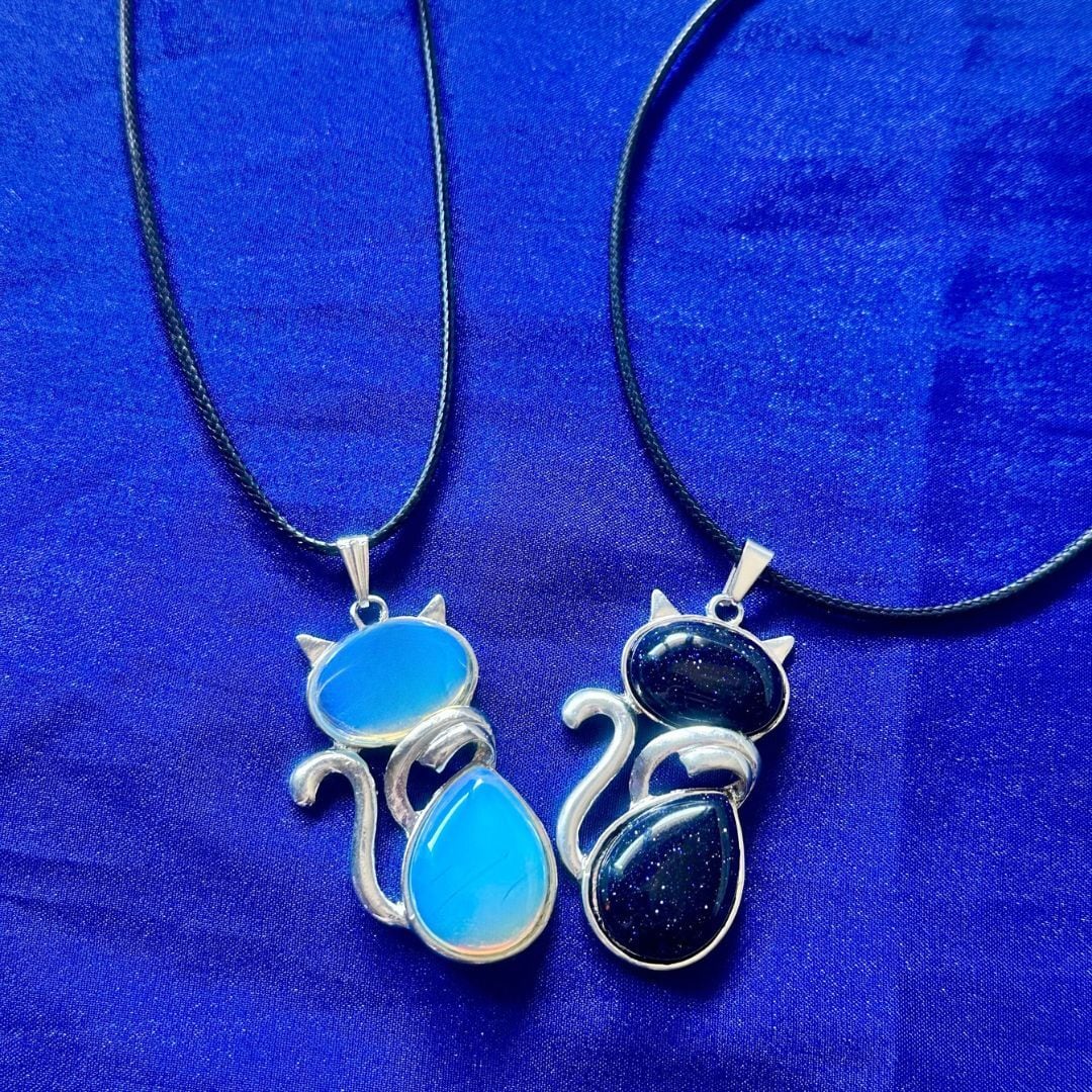 猫ネックレス|月と星を宿すお守りジュエリー・選べる2タイプ・癒しのブルーアクセサリー