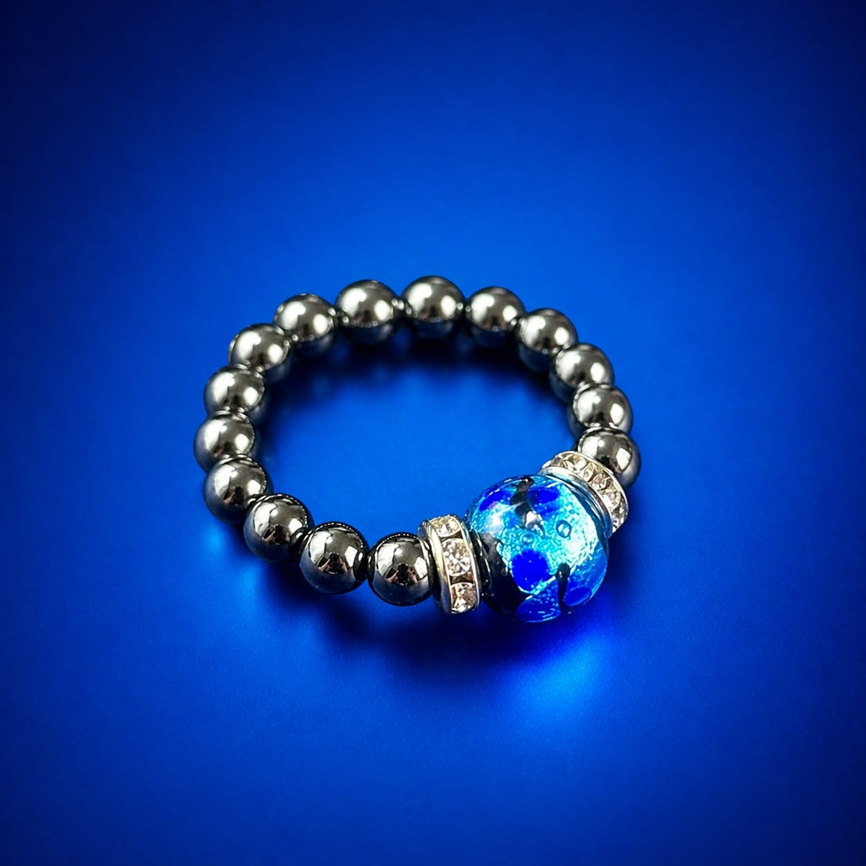 蓄光仕様の琉球ガラスを主役にした、特別なフリーサイズリングです。