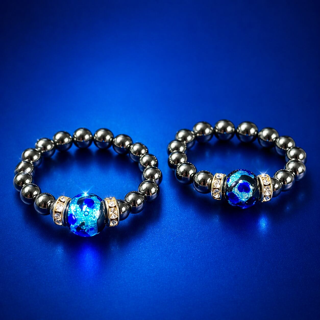 中央には、美しい青の琉球ガラスを配置。
