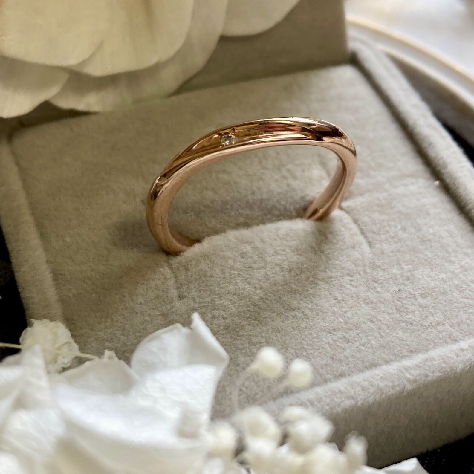 甘く上品な輝きを放つ、17号の小粒ダイヤモンドリング。ピンクゴールドの華やかさと、小粒のダイアモンドの煌めきが、指元を一層華やかに演出します。繊細なデザインでありながらも存在感を放つこのリングは、特別な日の指輪としてだけでなく、普段使いのアクセサリーとしてもお使いいただけます。大切な人への贈り物にもぴったりのアイテムです。プラチナ製ではなく、ピンクゴールドなので、価格も比較的お手頃。普段使いにも気軽にお楽しみいただけます。