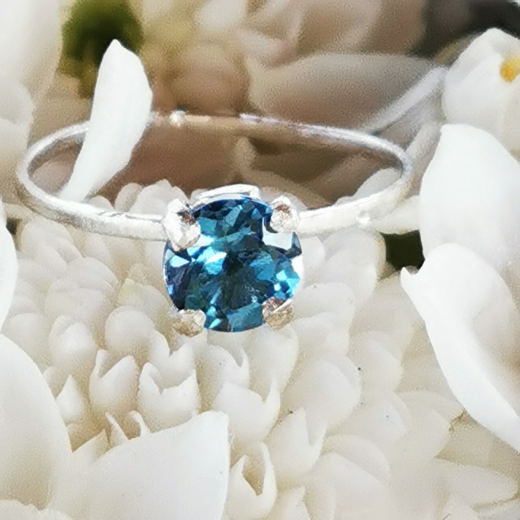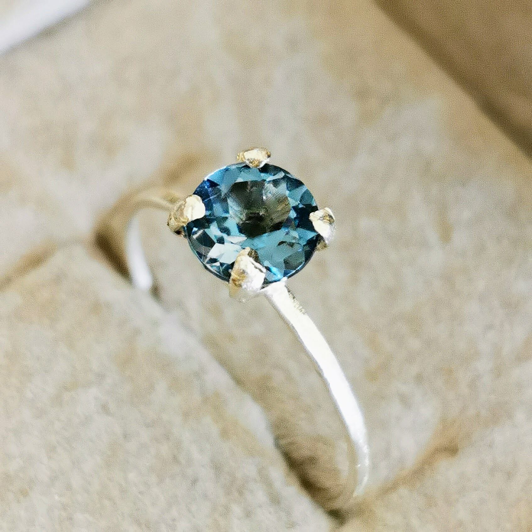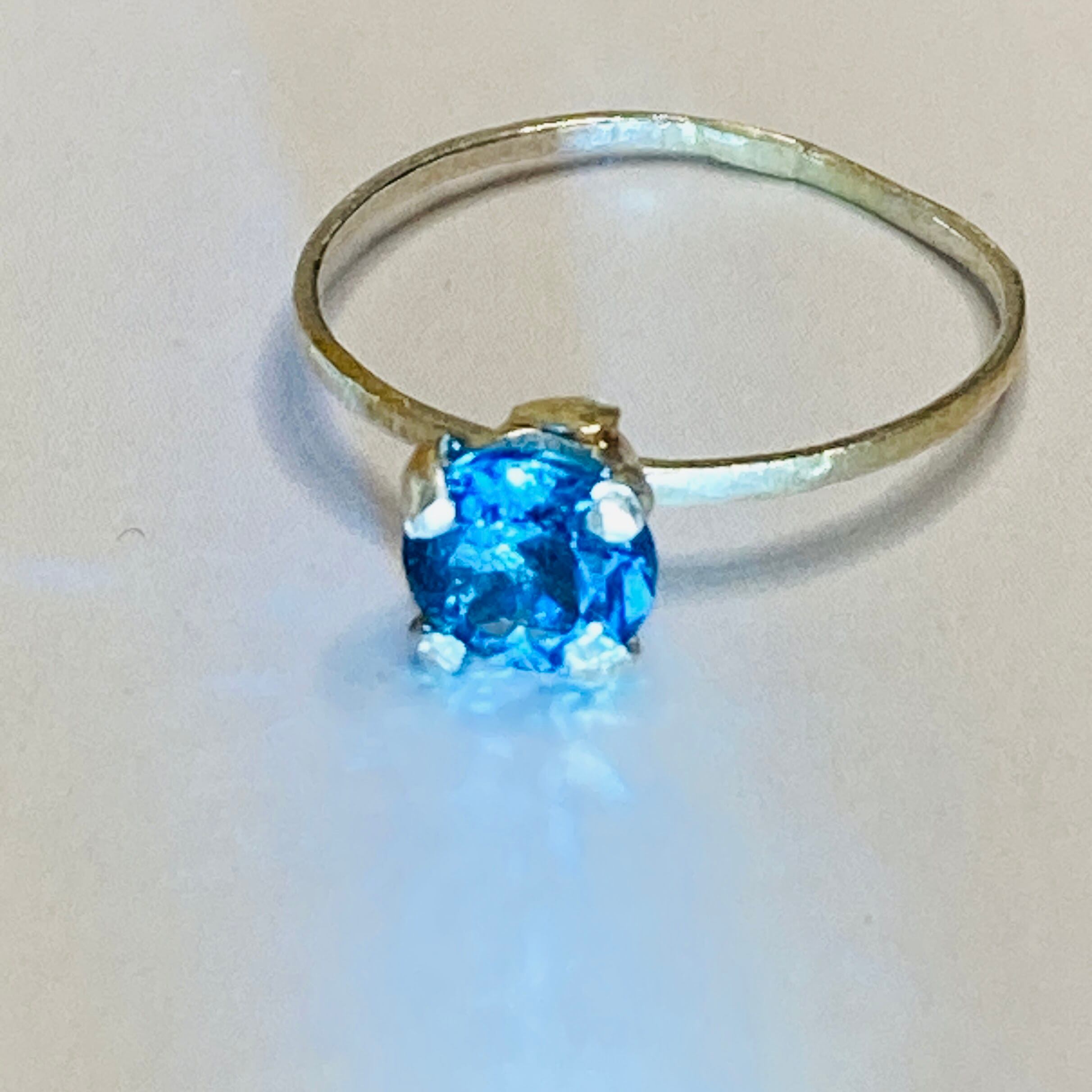 サイズ変更無料で承っております。指輪の線型はなんと0.1ミリ!細さの限界に挑戦した、華奢なデザインのリングです。華奢なデザインが魅力のリングに、美しいブルートパーズが輝きを添えています。ブルートパーズは約5㎜の大きいトパーズを入れた華奢な指輪でどの角度からも天然石に光が沢山当たりいつもキラキラしているルースを楽しめるように設計したオリジナルデザインです
