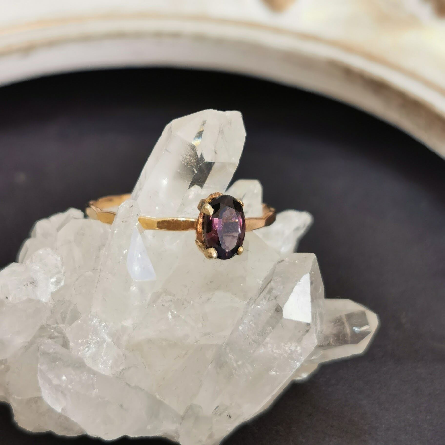 ロードライトガーネットの最大の特徴は、美しいワインレッドの紫色を帯びた煌めきです。