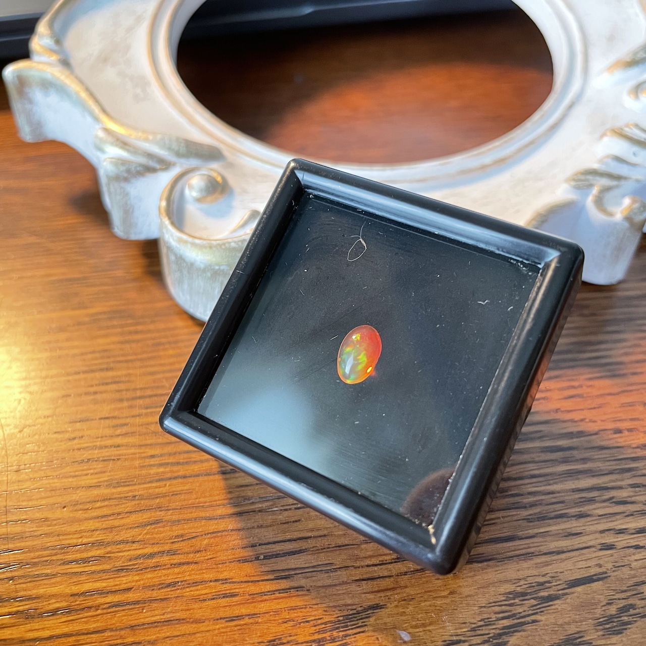レッド、グリーン、オレンジの遊色効果が強く、ゆらゆらと入れ替わり立ち替わり現れる色彩効果が魅力です。