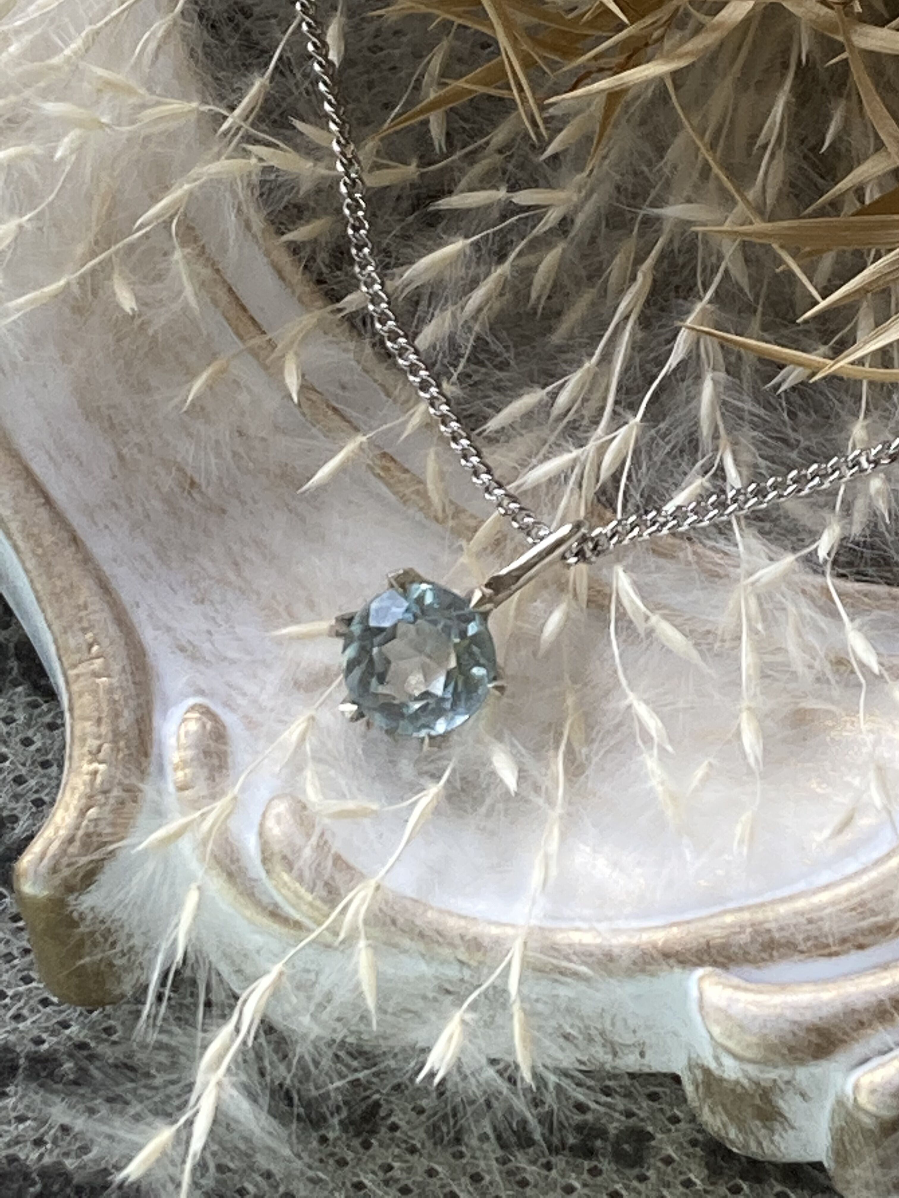 2カラットのブルートパーズが首元で清涼感のある輝きを放ちます。どんなコーデにも合うシンプルなデザインです