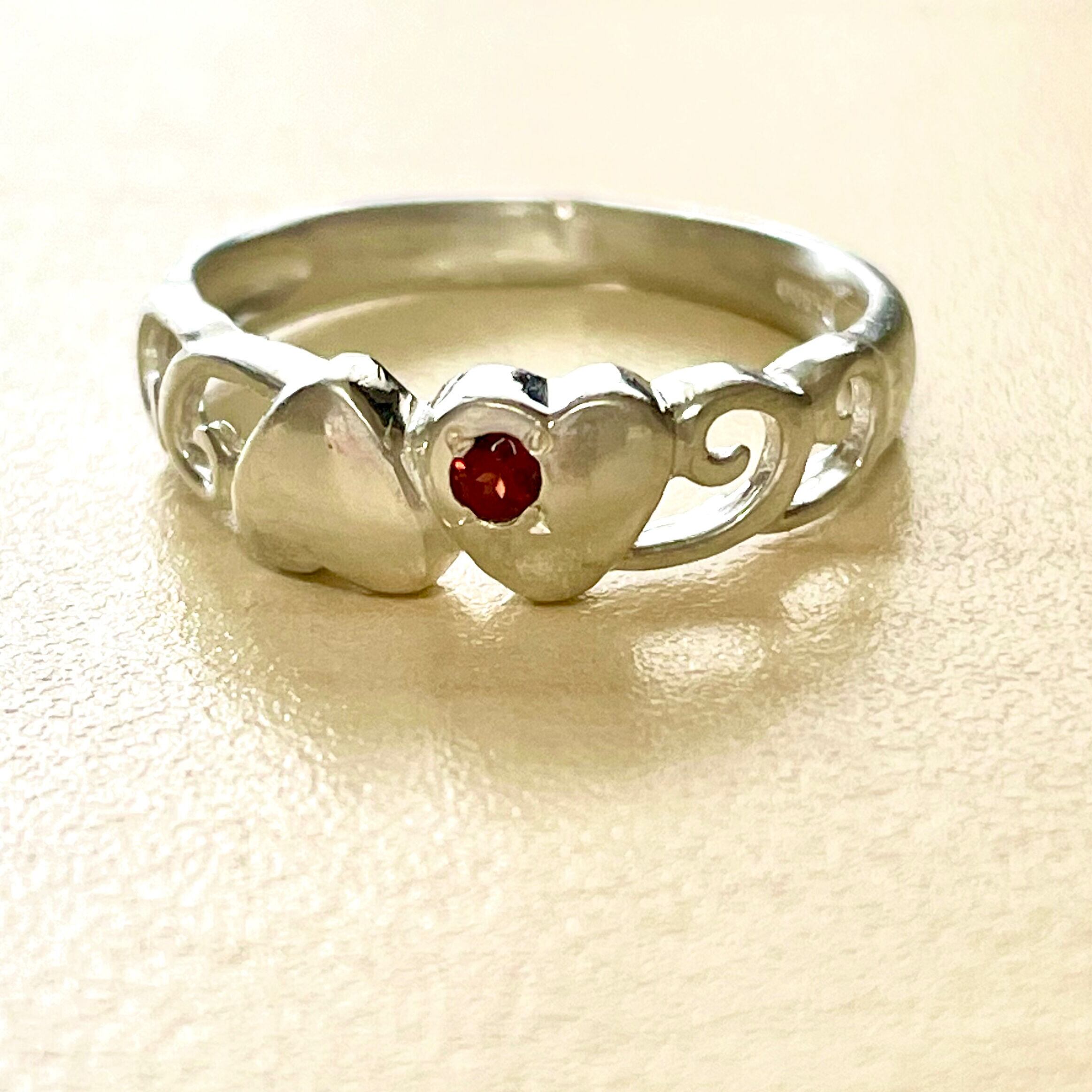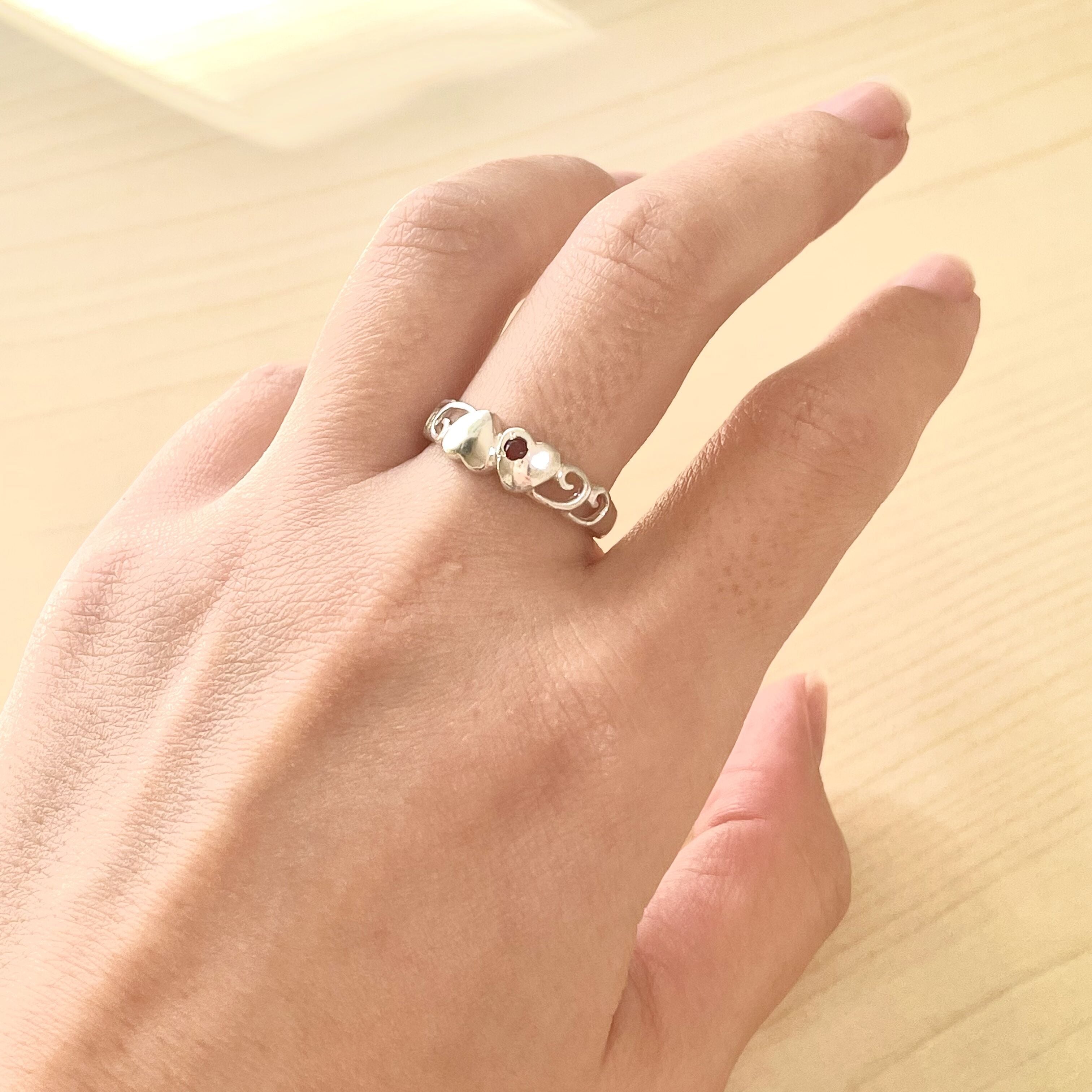 「唐草模様とハートの組み合わデザインの指輪/レッドスピネル」