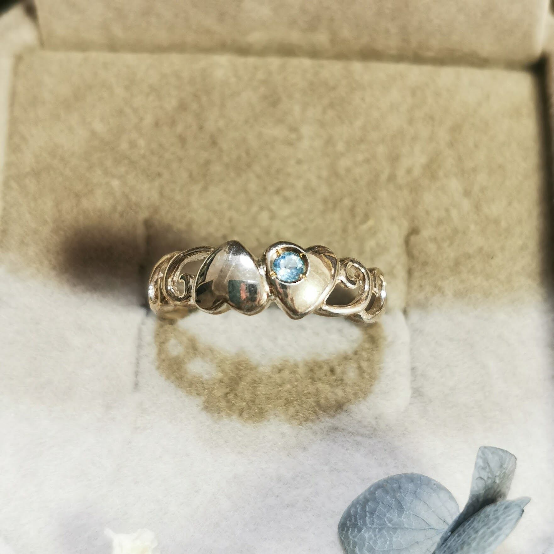 「ハートと唐草の指輪 ブルートパーズ」