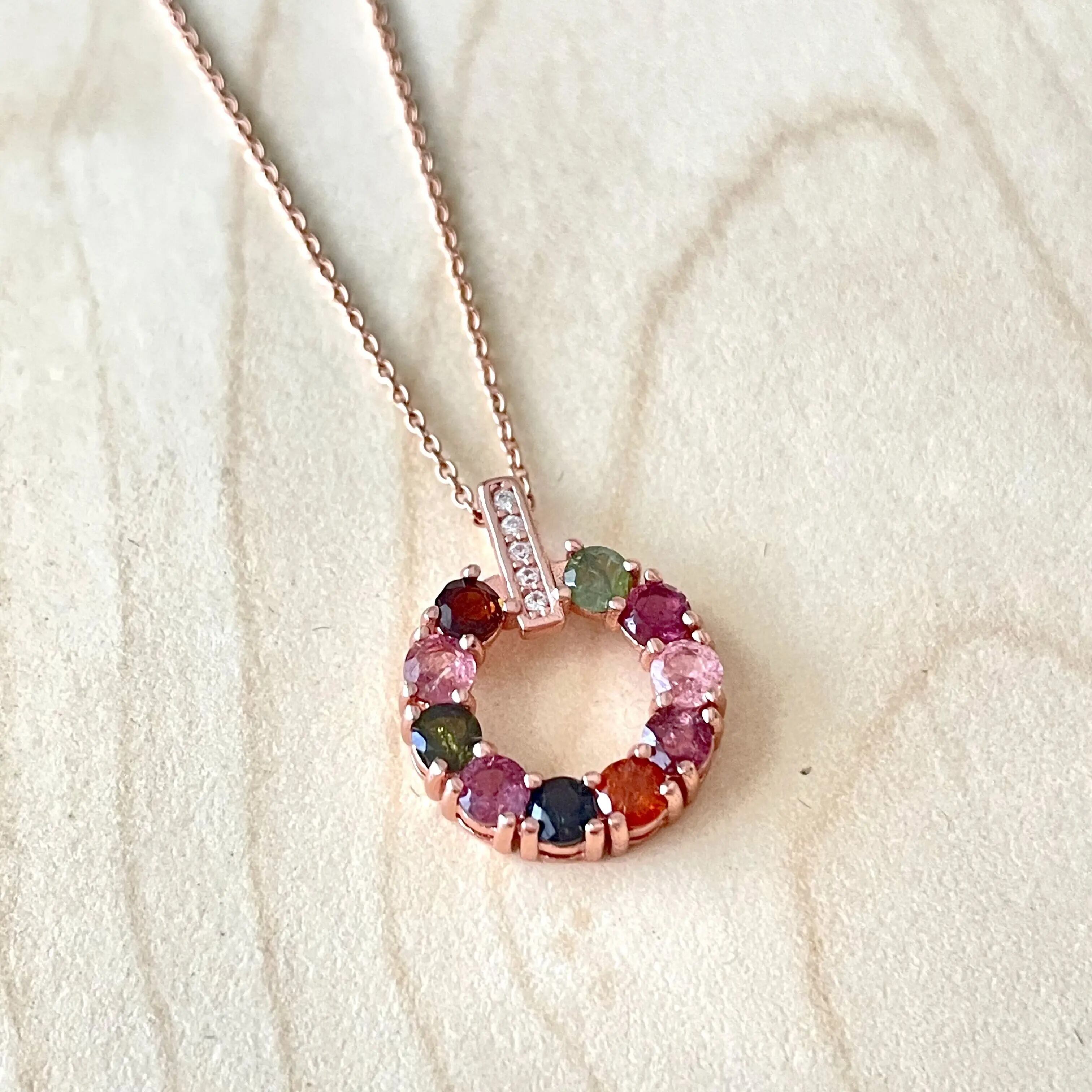 カラフル ガーネット/ピンクゴールド/サークルネックレス