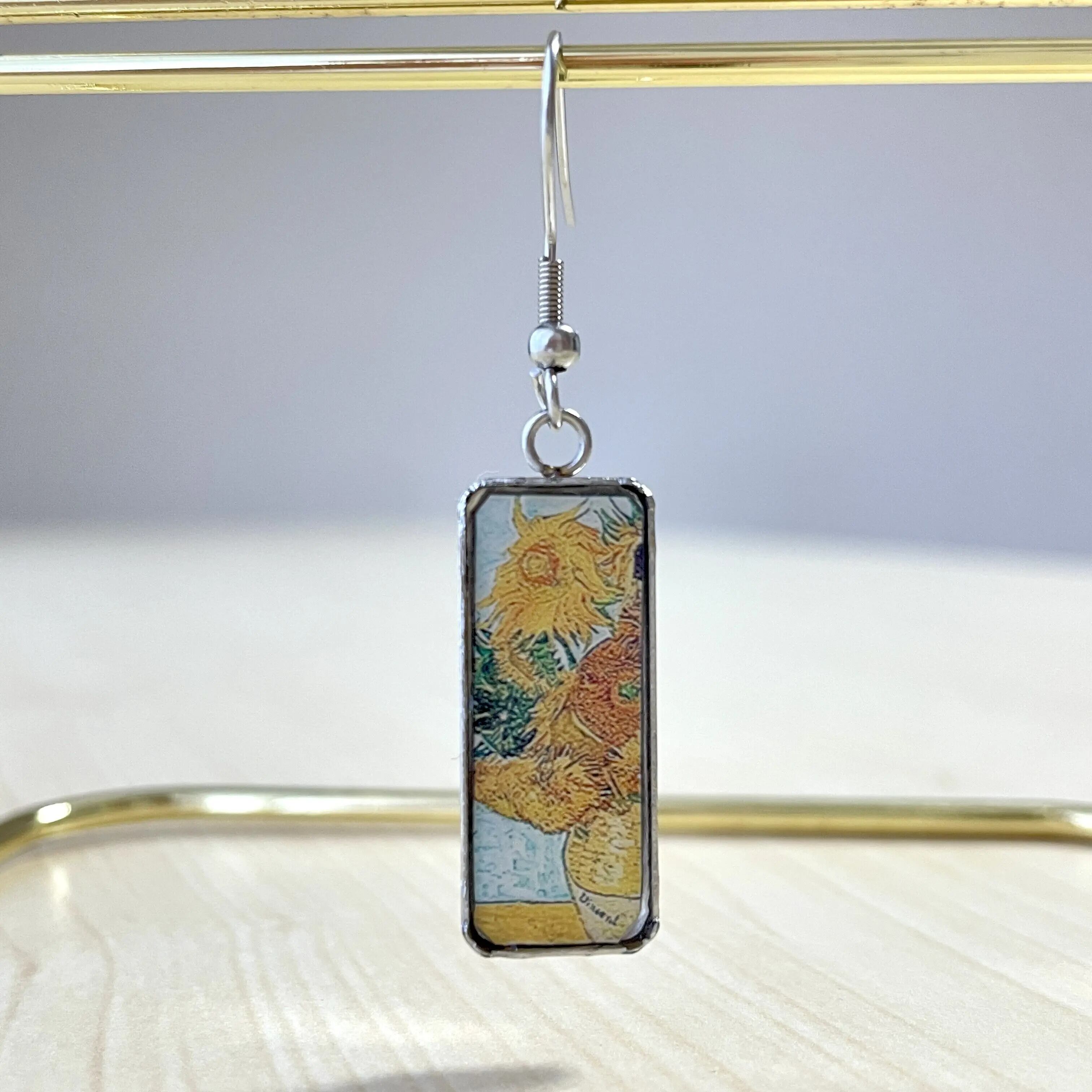 世界的有名なゴッホの「ひまわり」一枚絵を2枚に分けてピアスに仕立ててます