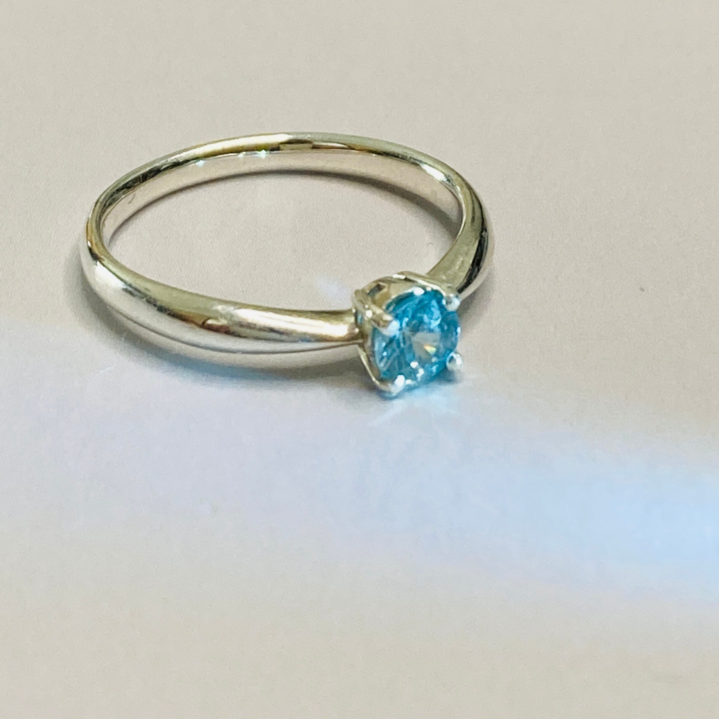 サイズ直し無料で行います。ジルコンの中でも特に人気のあるブルージルコン。ブルージルコン0.64ctのこの指輪は、華やかさと洗練された雰囲気を兼ね備えた一品です。美しいブルーの輝きがあなたの手元を彩ります。忘れていた夢を思い出し新たな挑戦の後押しをしてくれそうな指輪になりました