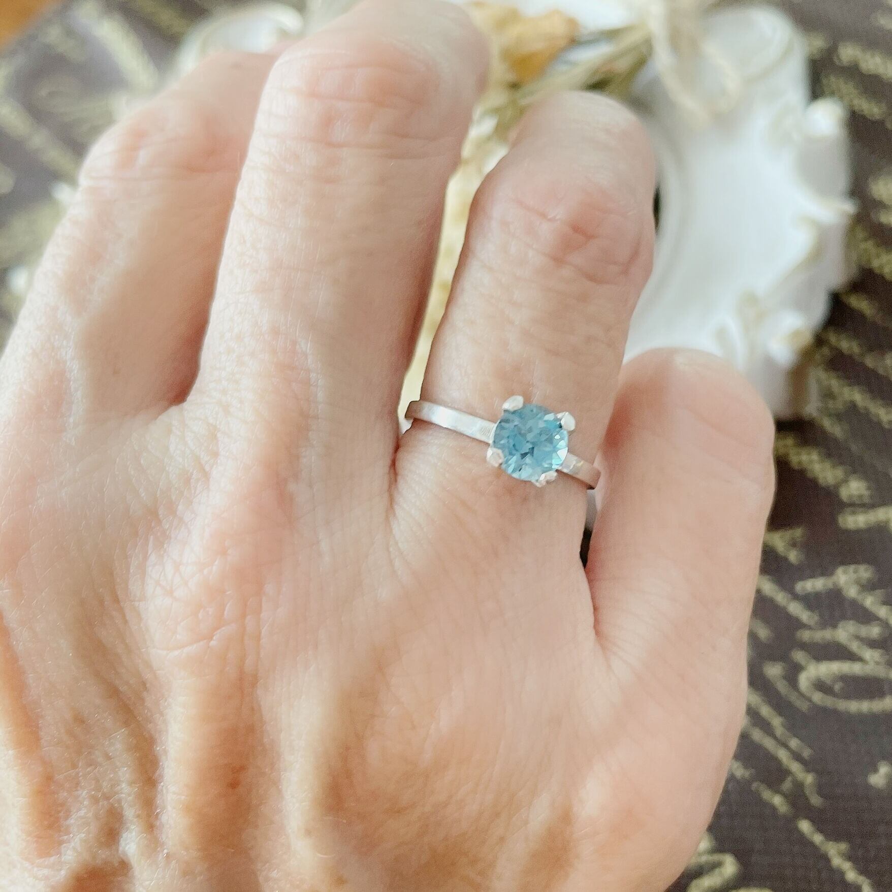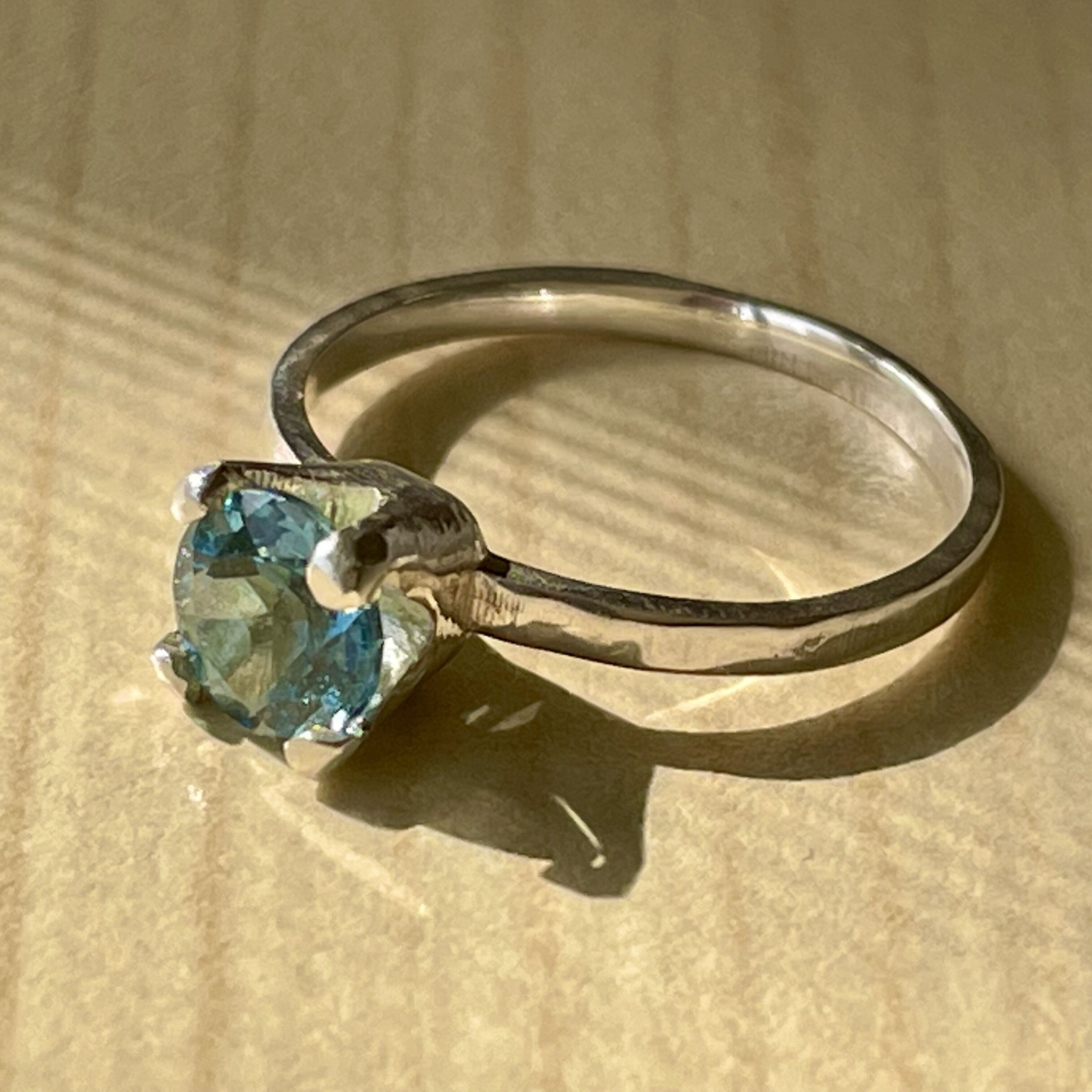 ジュエリー春日オリジナルデザインのリング枠に約5㎜の大きい天然トパーズの指輪です。どの角度からも天然石に光が沢山当たりいつもキラキラしているトパーズを楽しめるように設計したジュエリー春日オリジナルデザインです