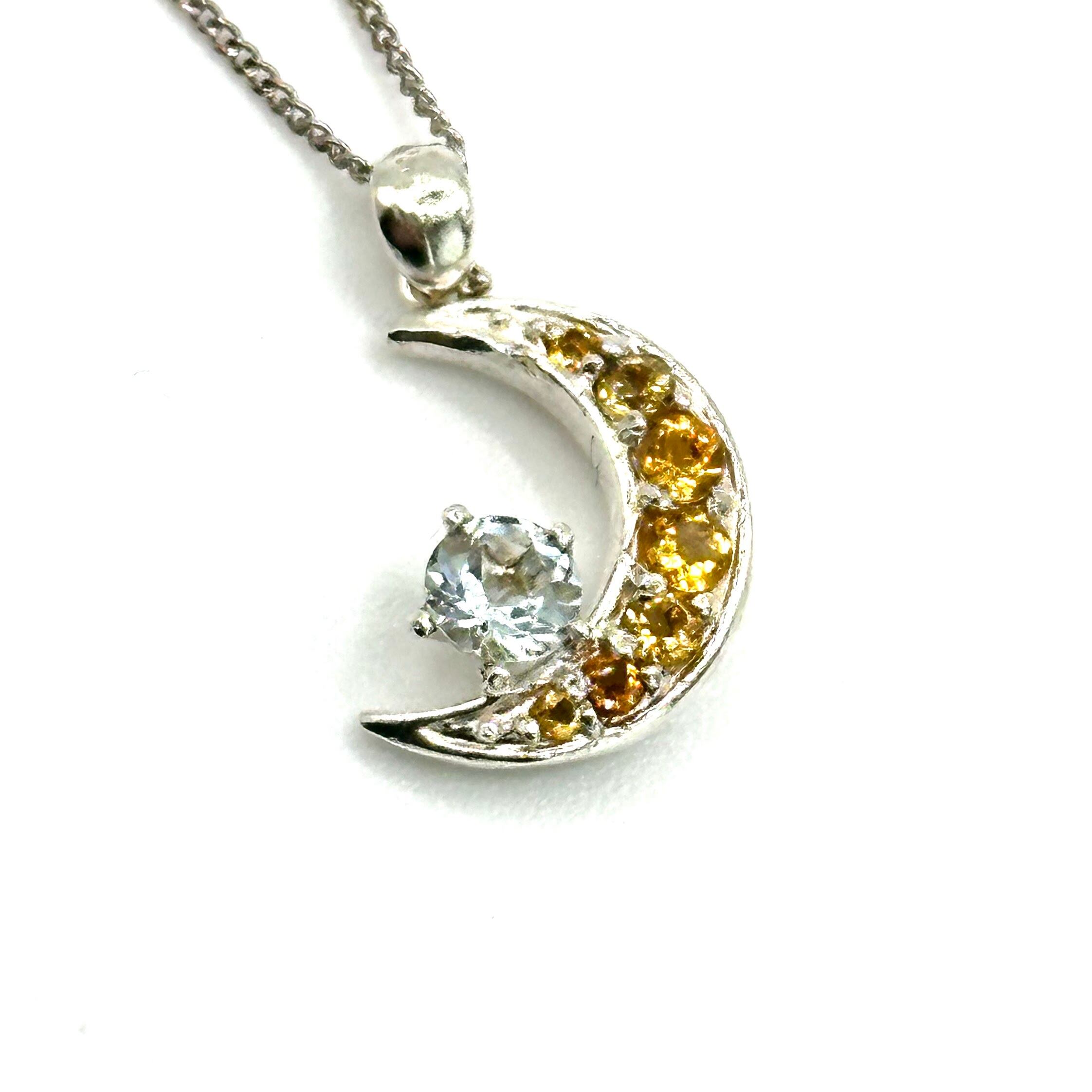 月と太陽の輝きが重なり合う、不思議な魅力を放つネックレス。幸運を招くとされるトパーズと、バランスの象徴である月と太陽。その力を合わせて、あなたの日常に幸せと調和をもたらすネックレスです。天然石ならではの美しい色合いが日々の生活にポジティブなエネルギーを注ぎ込んでくれることでしょう。太陽の温かさと月の神秘を感じながら、新たな可能性への一歩を踏み出しませんか。