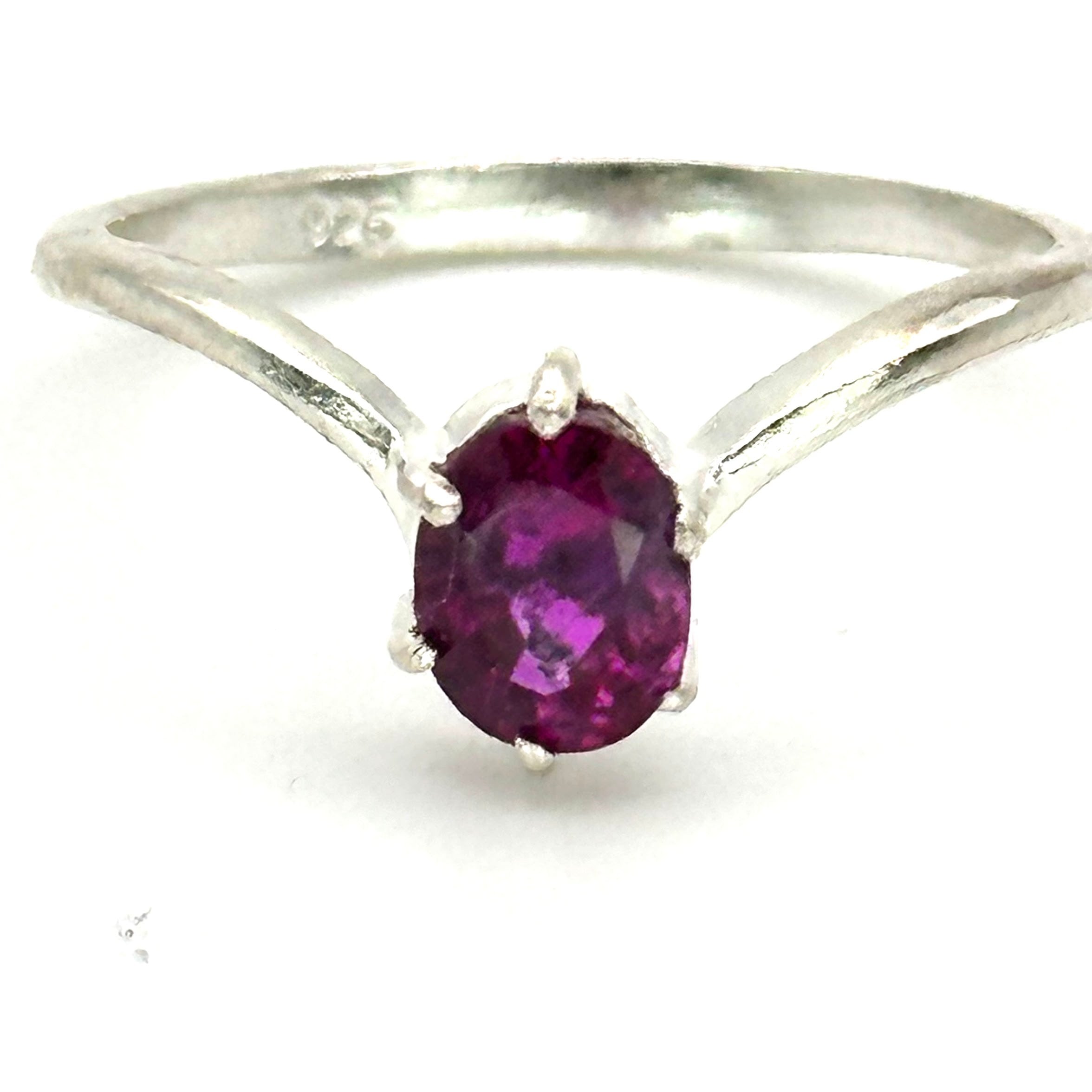今注目のマゼンタカラーの宝石の中の一つロードライトガーネット。マゼンタカラーのロードライトガーネットのV字デザインリング。V字デザインの指輪は、手の甲に向かって視覚ポイントが下にくるため「指が太い」「指が短い」というコンプレックスをカバーします。 縦のラインが強調されて指細長くスタイリッシュに見せてくれます。手に入れてみたくなるような魅力的なリングは、自分へのご褒美や特別な日のプレゼントに最適です。このロードライトガーネットのV字デザインリングが、日常に幸せな輝きをもたらし、あなたの指先を美しく彩ります。