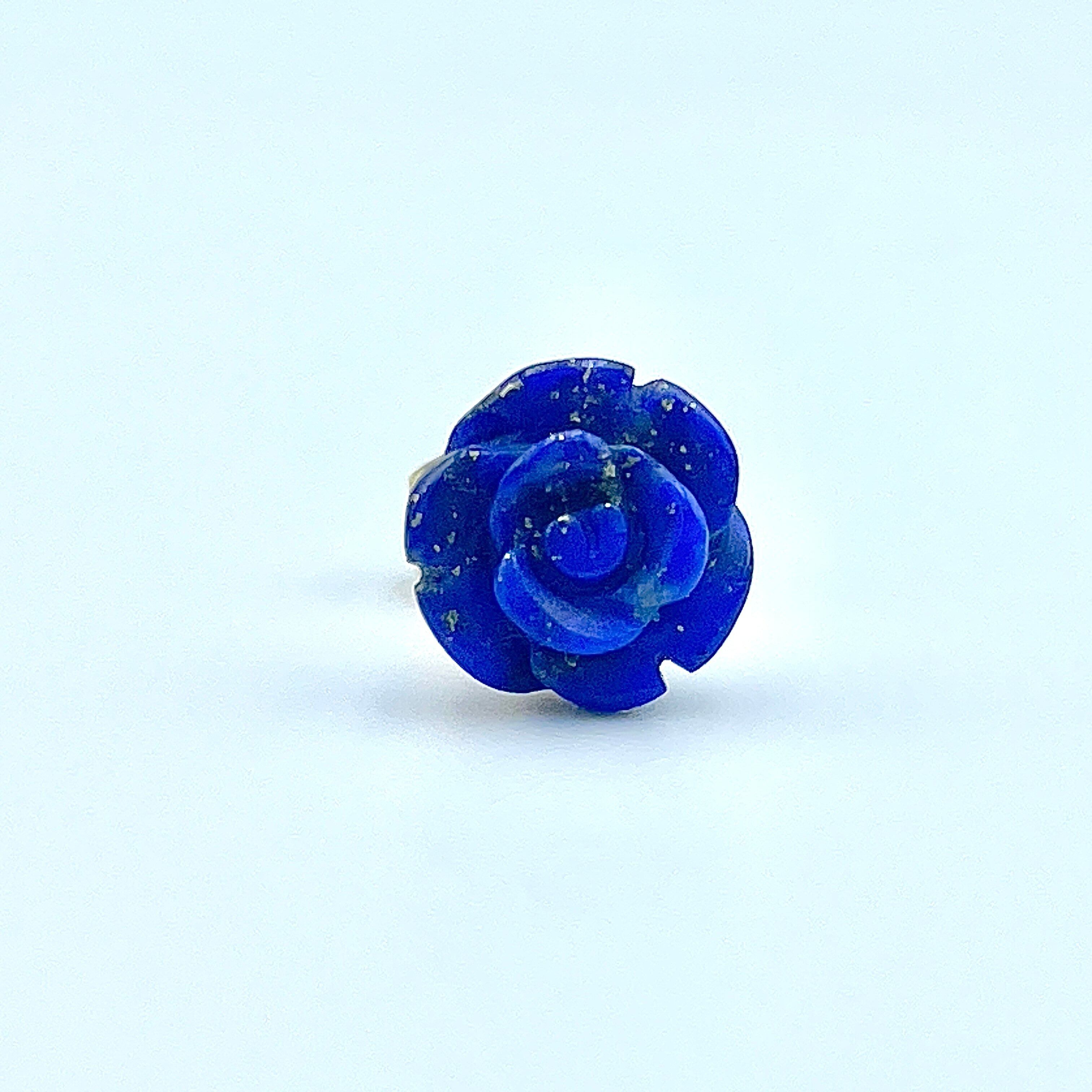天然石ラピスラズリにバラの彫刻を施したシンプルなスタッドピアスです。