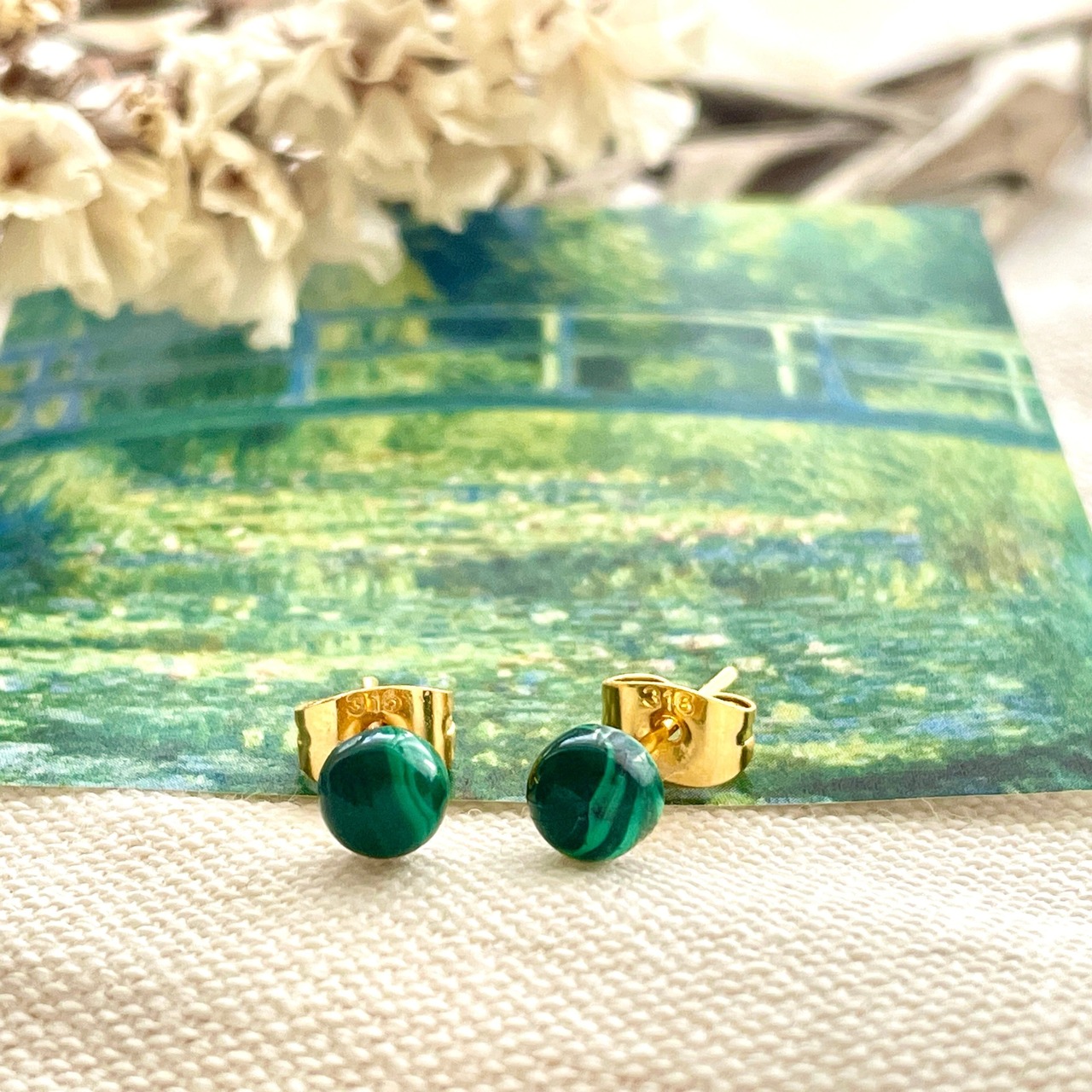 モネの作品《太鼓橋》を思い出させるような、天然石マラカイトのピアスです。