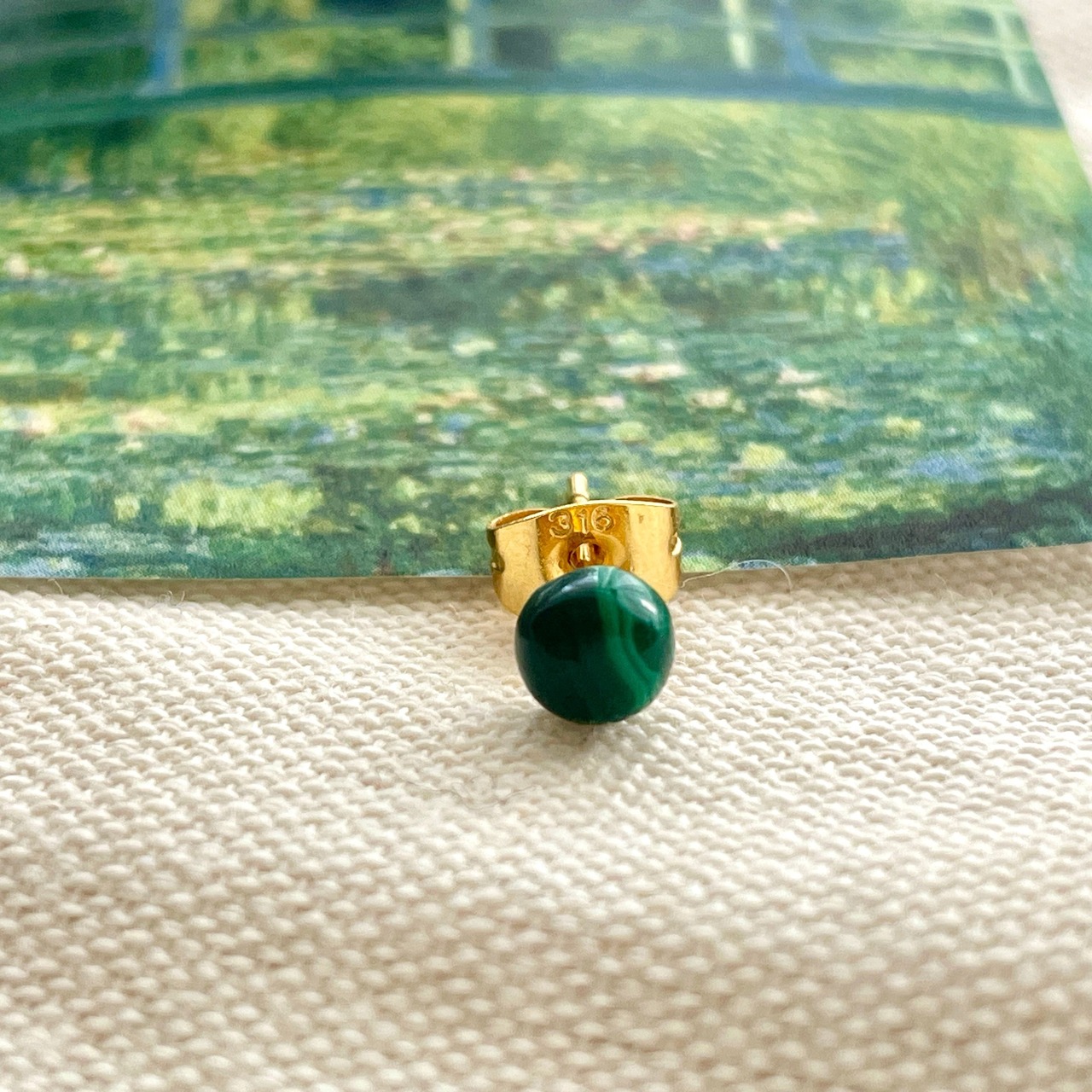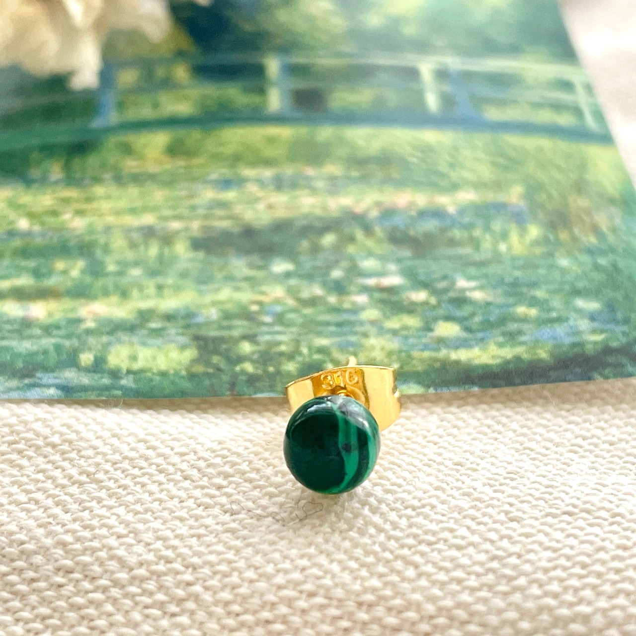 【アレルギー対応】天然石マラカイト シンプルピアス