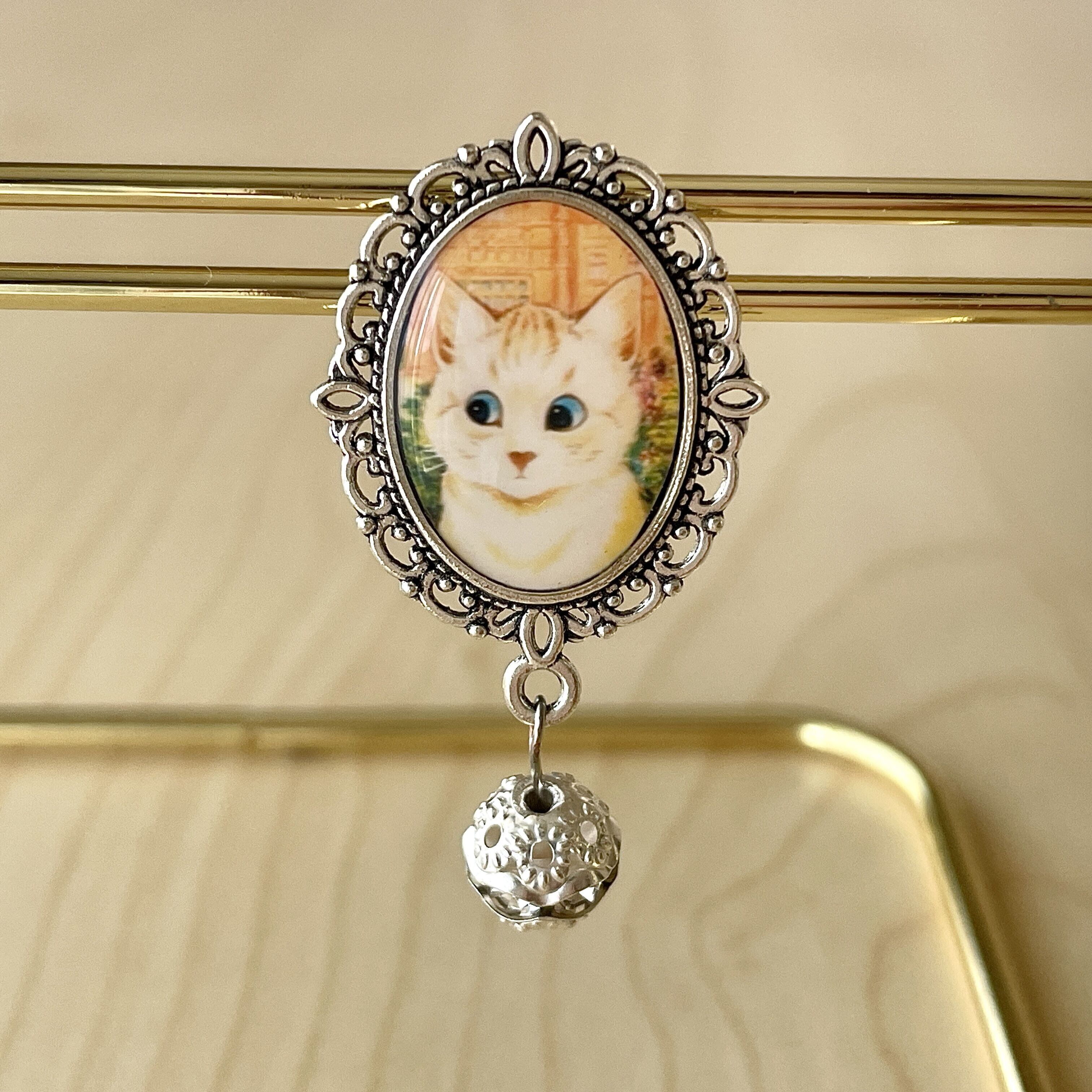 猫の画家として知られるルイス・ウェインの愛らしい猫の絵を忠実に再現したピアスです。大きな青い瞳を持つ可愛らしい猫の絵が描かれており、見る者に癒しを与えます。猫好きな方や個性的なアクセサリーをお探しの方にぴったりの一品です。