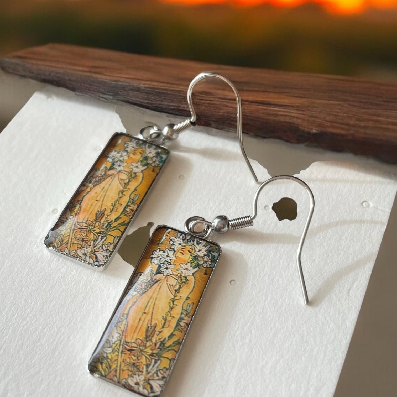 ミュシャ「4つの花-百合-」ピアス|名画アクセサリー