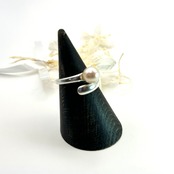 こちらの指輪は、美しいあこや真珠を使用したフリーサイズのシルバーリングです。あこや真珠の持つ上品な輝きと、シンプルでモダンなデザインが絶妙に調和しています。真珠のナチュラルな美しさが、シルバーのクールな光沢と相まって、洗練された大人の魅力を引き立てます。