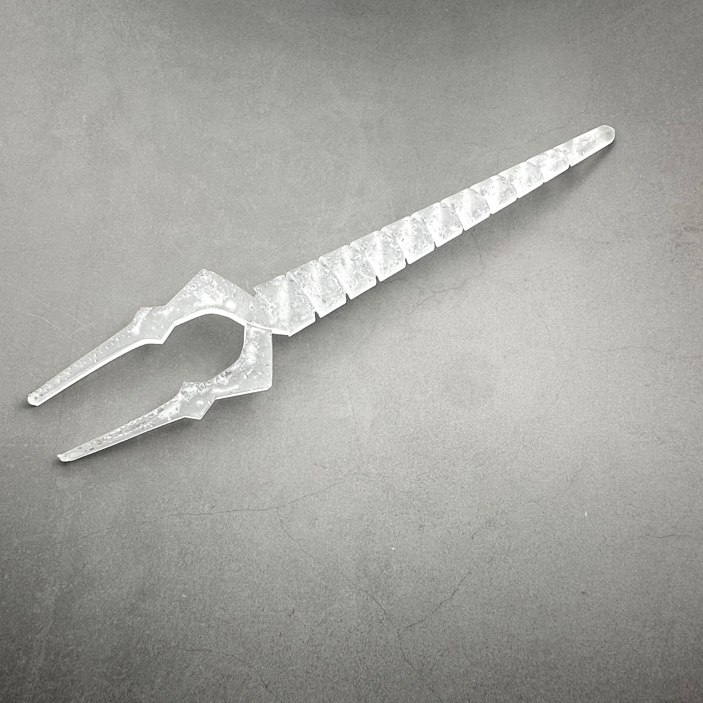 ご要望が多かった伝説の「ロンギヌスの槍」をイメージして作ったフォークの3DCADから光造形の3Dプリンターで作りました。精緻なディテールまでこだわり、シルバー925素材で鋳造されることで高級感と重厚感を兼ね備えるように制作しました。