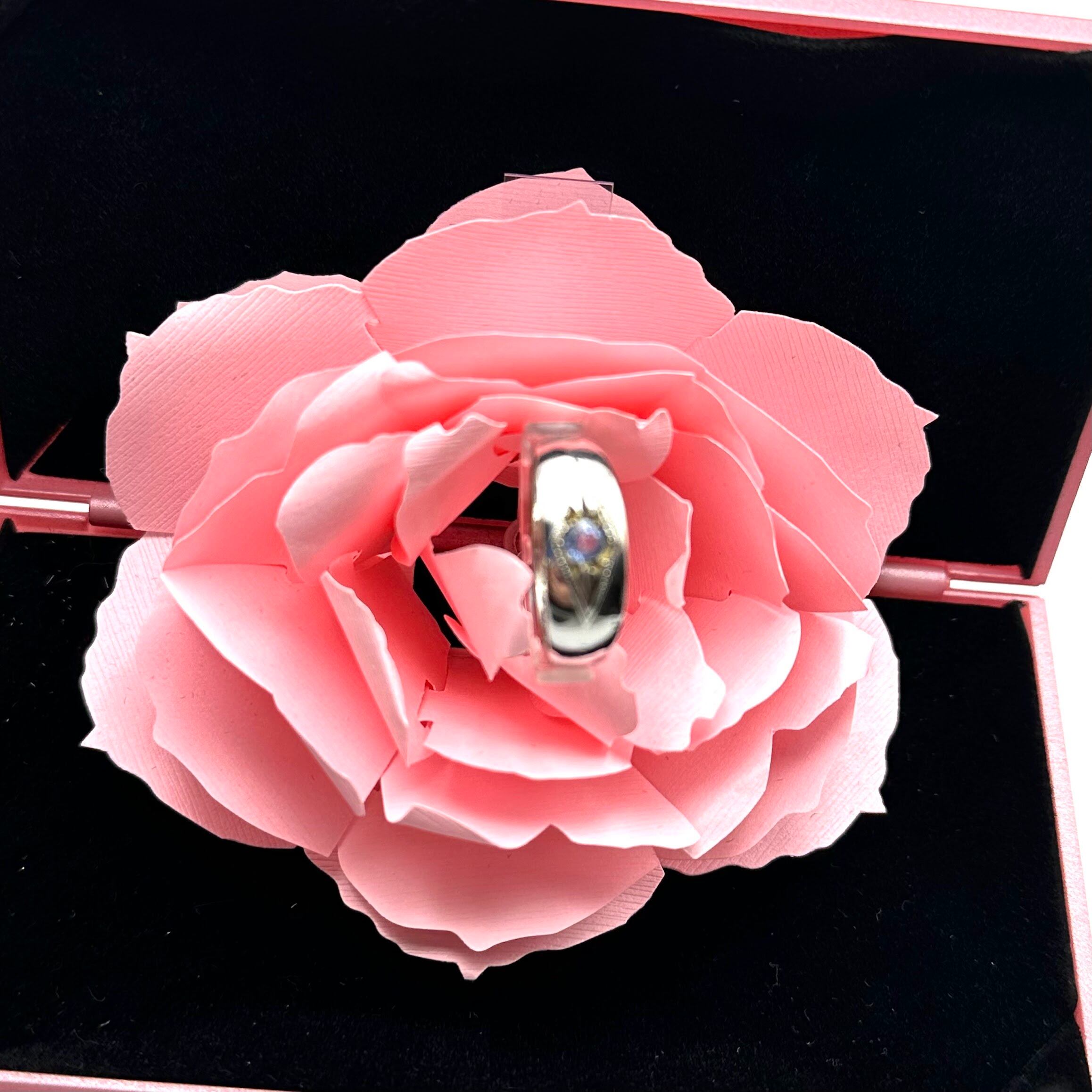 リングをそのまま収納できるので、日常使いのジュエリーケースとしても便利です。大切な思い出や愛の象徴を、この可憐なピンクのローズボックスで包み込み、いつでも手元に置いて楽しんでみませんか?