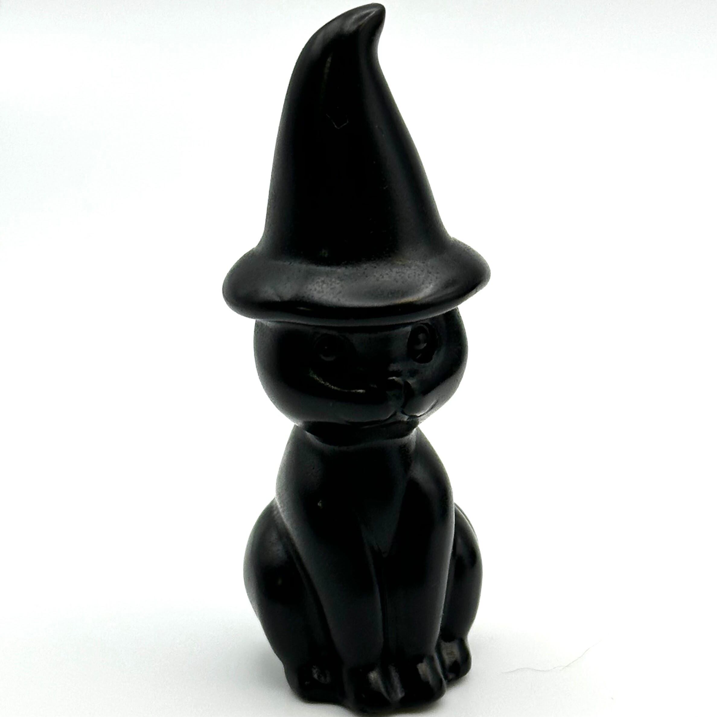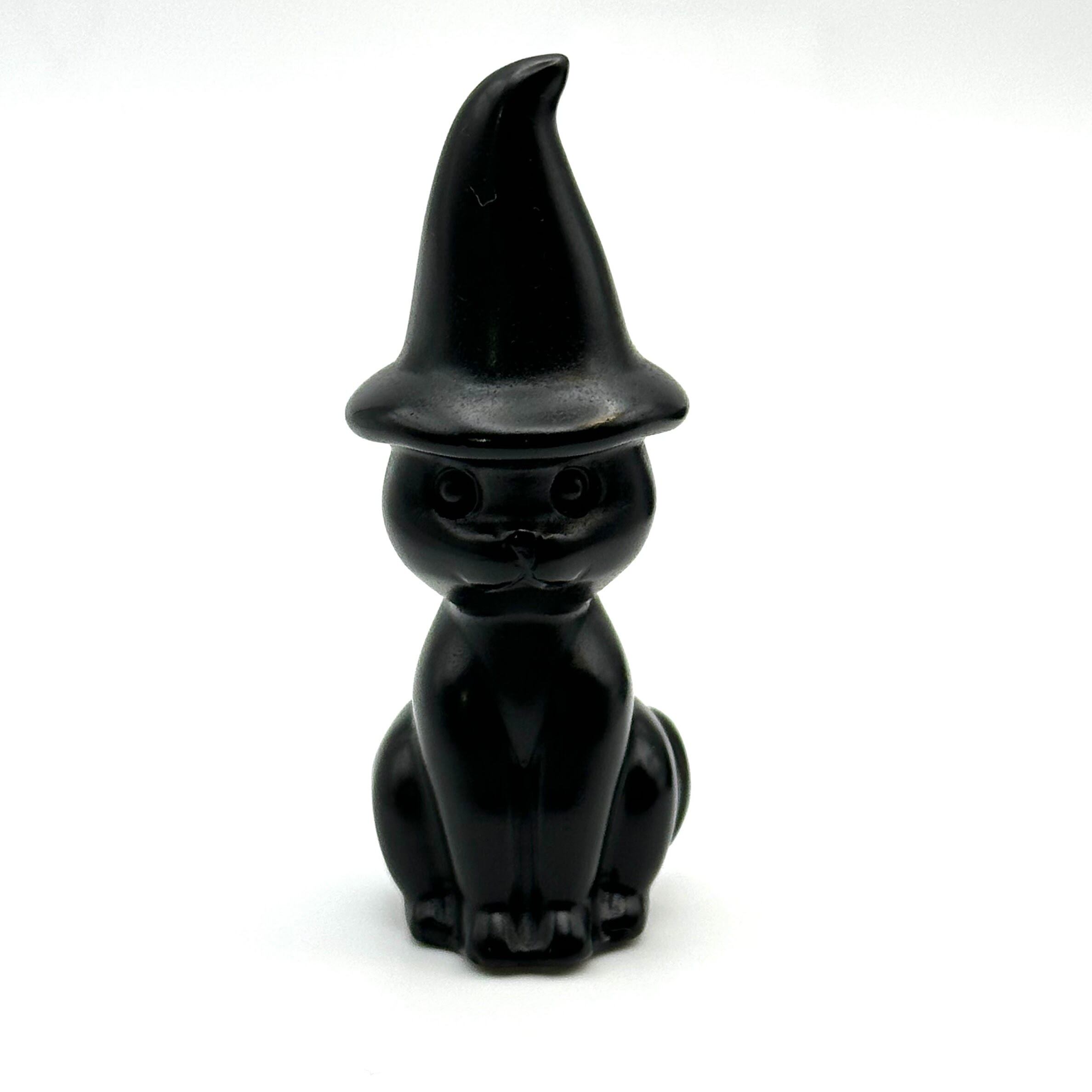 【彫刻置物】帽子を被った福ねこ /黒曜石