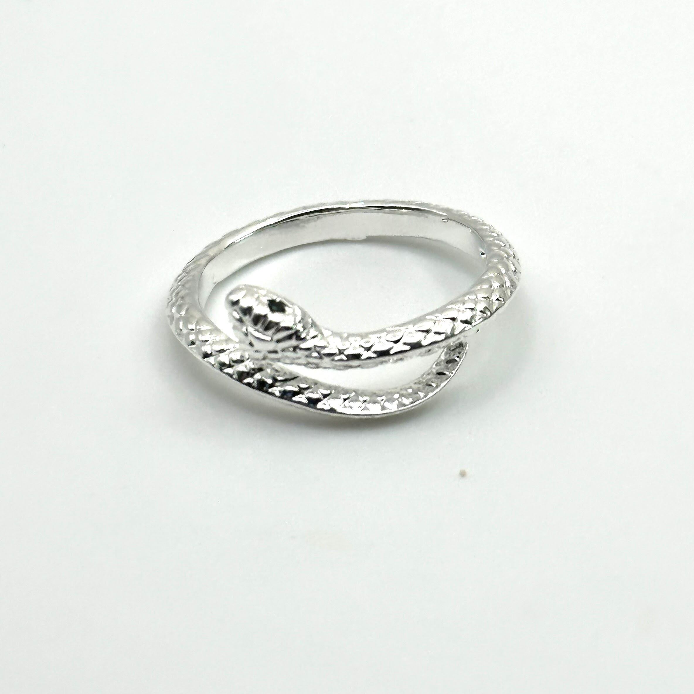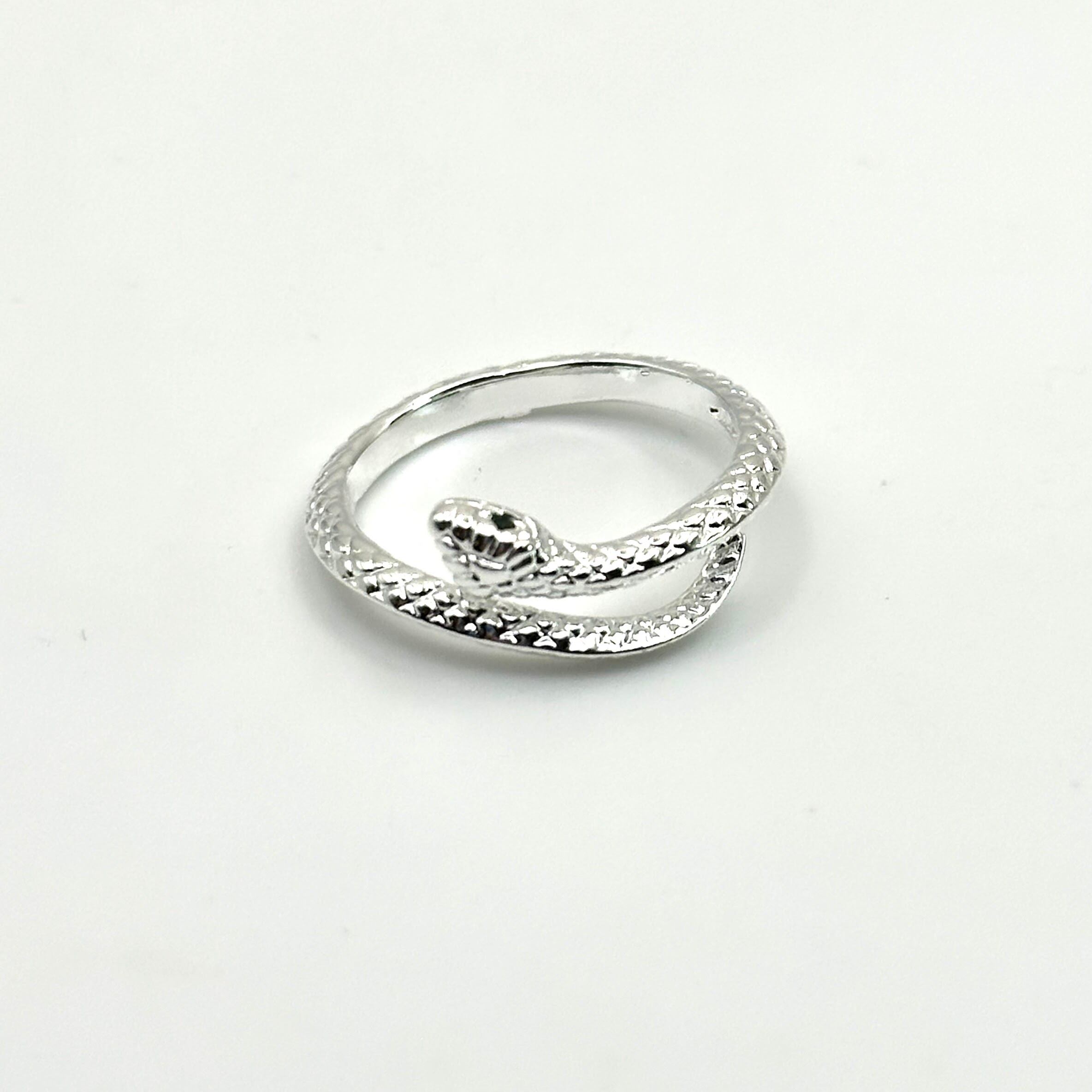 蛇が指を包み込むような繊細なディテールが際立ち、独特の存在感を放ちます。低アレルギー素材を使用しているため、敏感肌の方も安心してお使いいただけます。さらにフリーサイズ仕様で、どんな指にもフィットし使いやすい指輪です